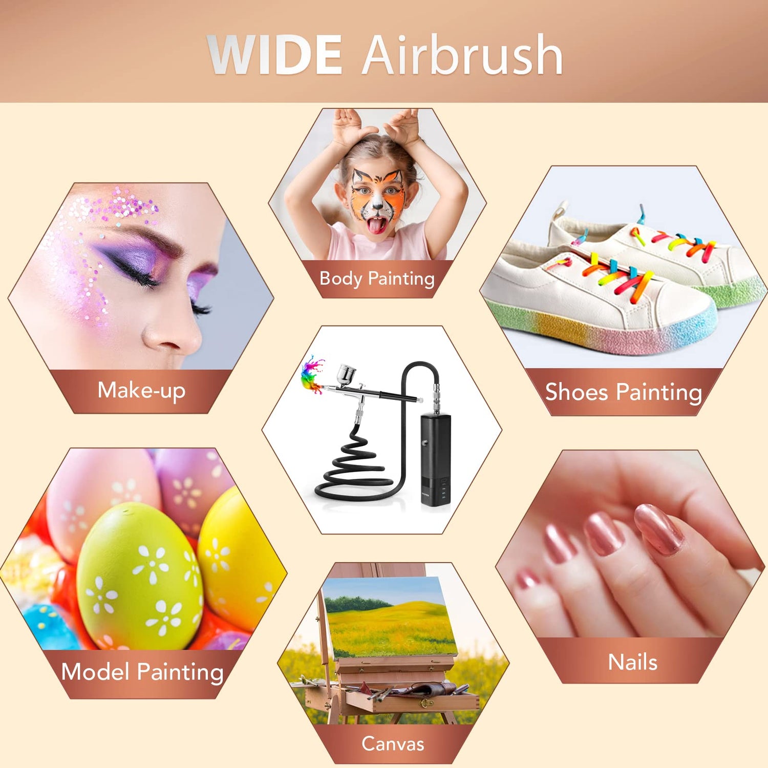 - Precision Airbrush Kit: Take your work on-the-go with our rechargeable portable air brush kit with air compressor, optimized for maximum performance and long battery life. The ergonomic design ensures comfortable use.