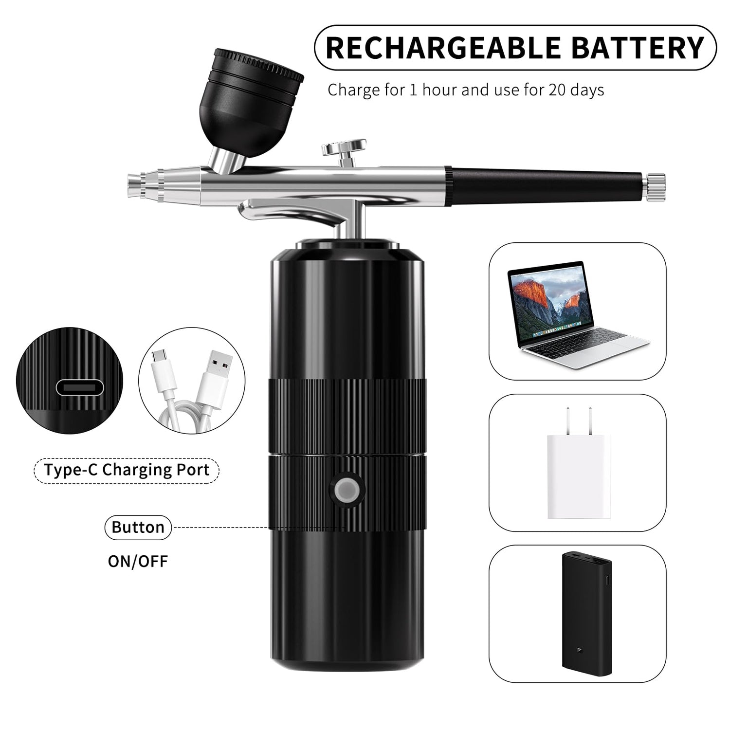 Airbrush Kit with Compressor Portable Airbrush Kit 48PSI High-Pressure Non-Clogging Air Brush Set Cordless Rechargeable with 0.3mm Nozzle and Cleaning Brush for Painting,Nail Art, Makeup (black)