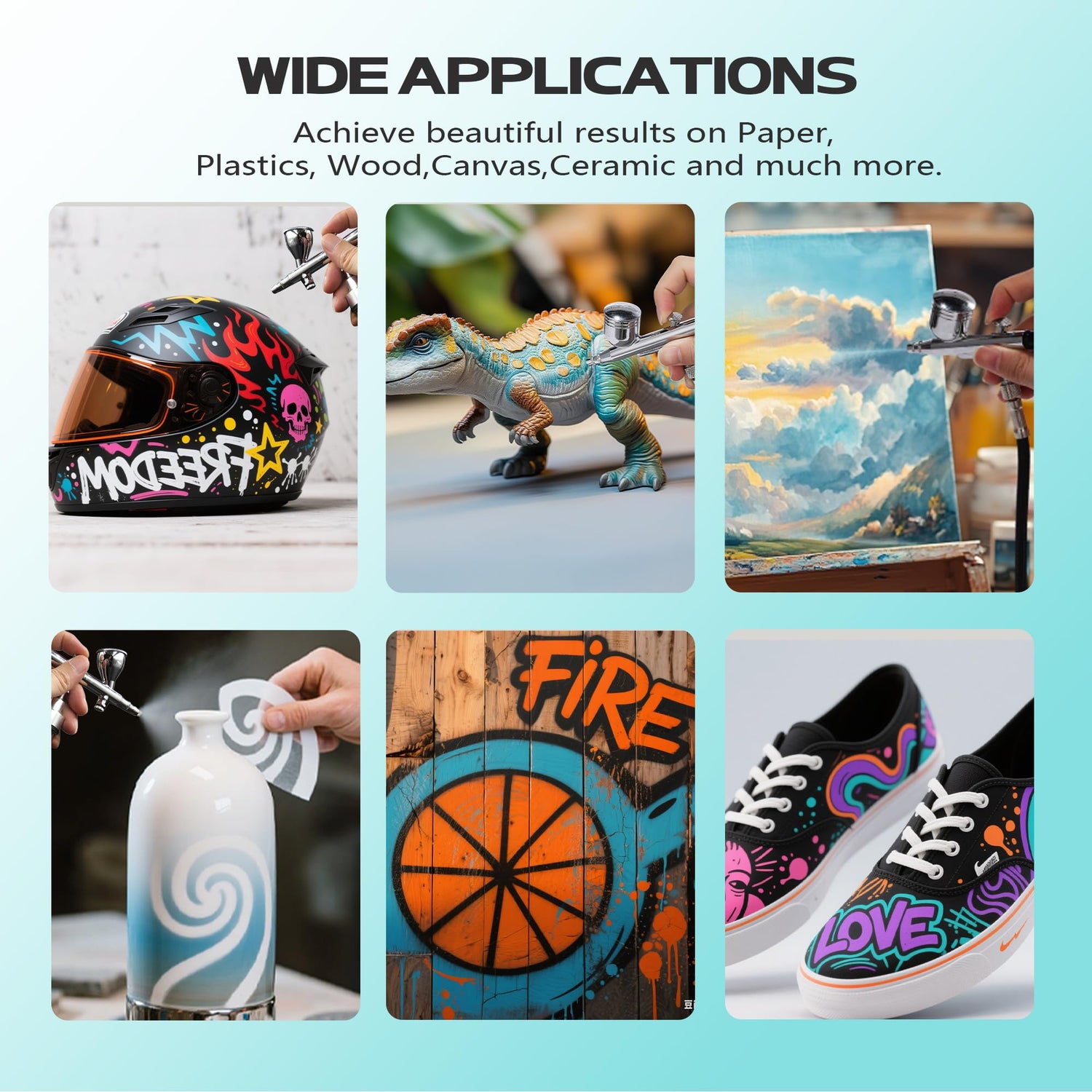 - Versatile Use: This acrylic airbrush paints great for Artists, Beginners and students. getting permanent results on paper, shoes, canvas, wood, fabric, leather, plastic, metal, ceramics, model and most mixed media and textile surfaces etc..