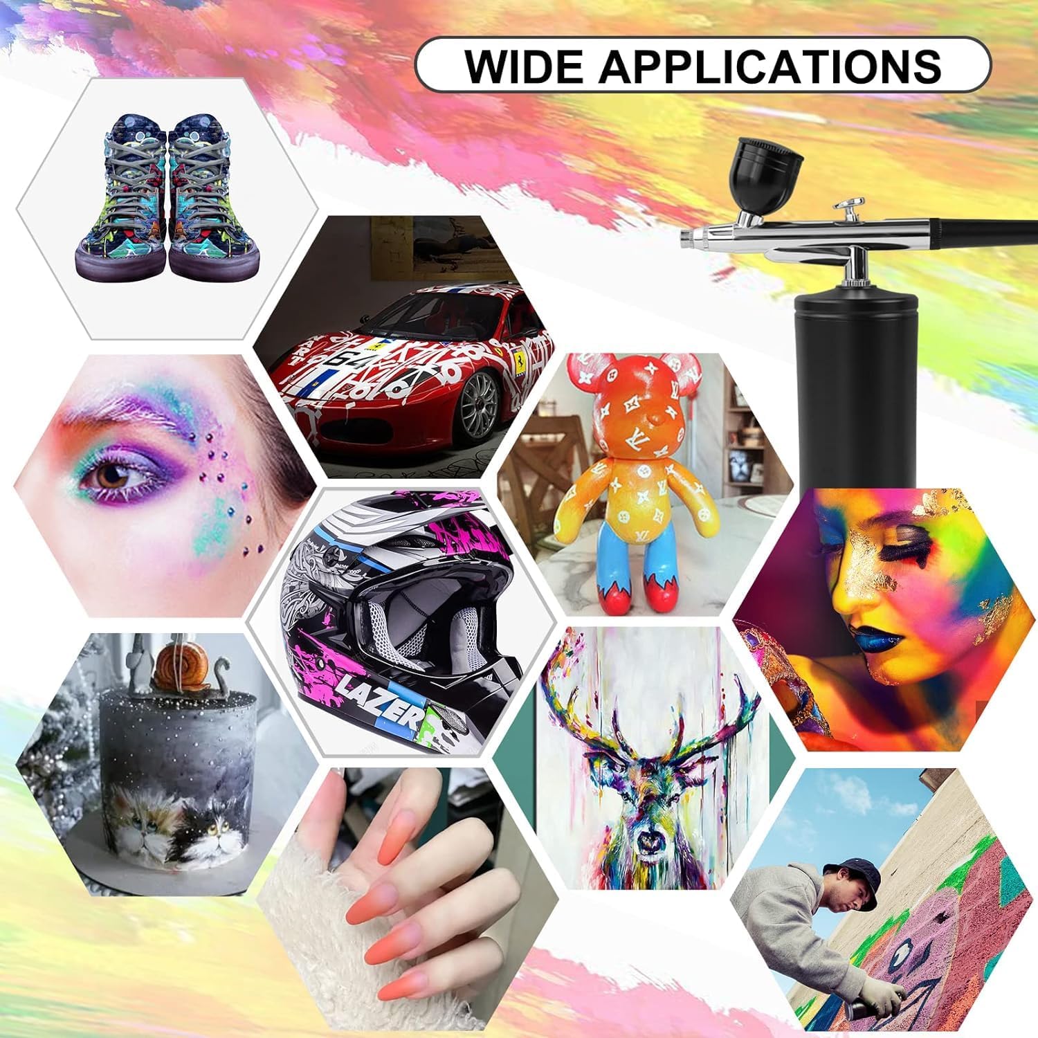 - ♚【EASY TO CLEAN】:The unique funnel shape allows the effective flow of paint and the airbrush gun is easy to clean with a brush, which makes it the best tool for beginners and experienced painters.