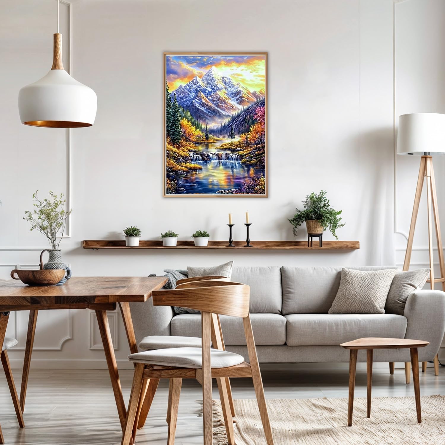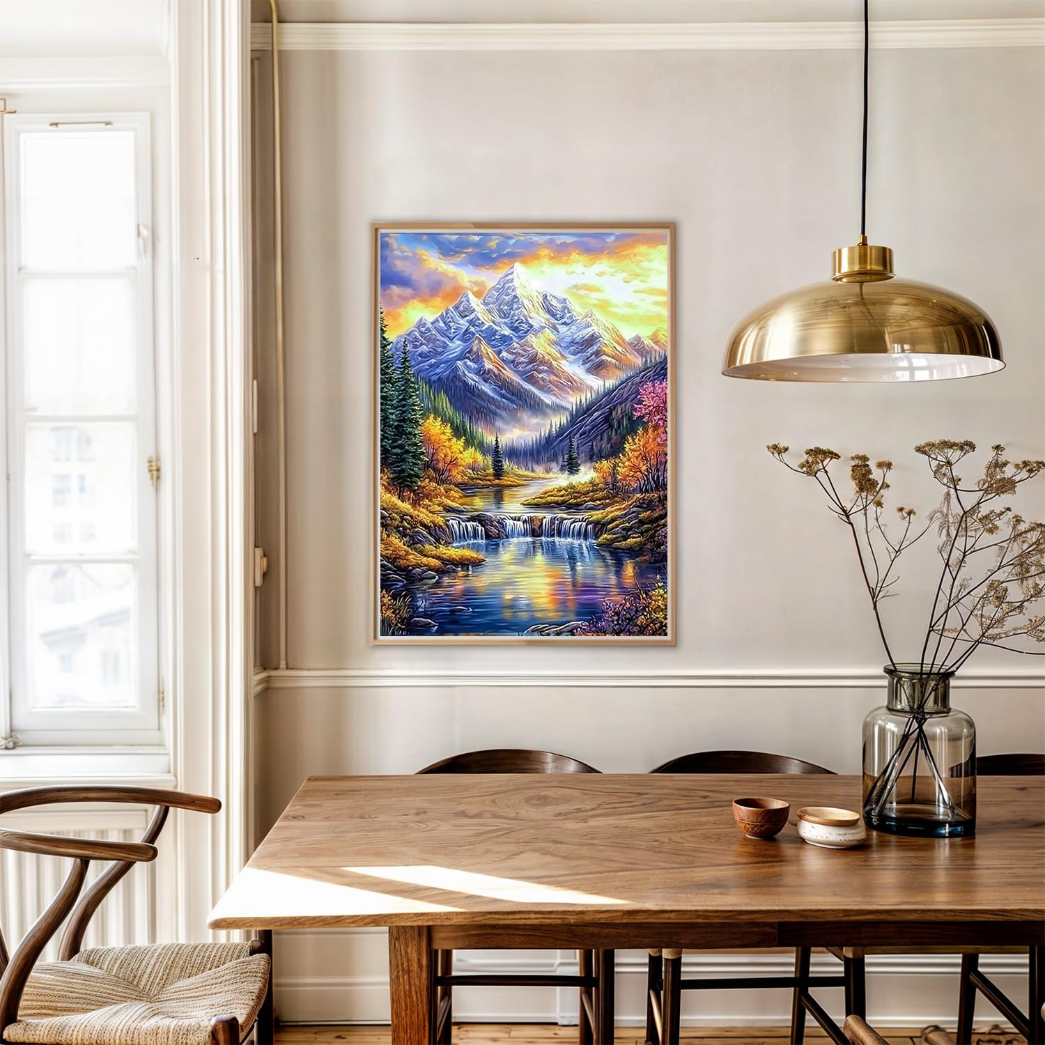 AIRDEA Scenery Diamond Art Paintings Kits for Adults,DIY Gem Art Kits for Beginner,12x16 in,Mountains and River,Round Full Drill