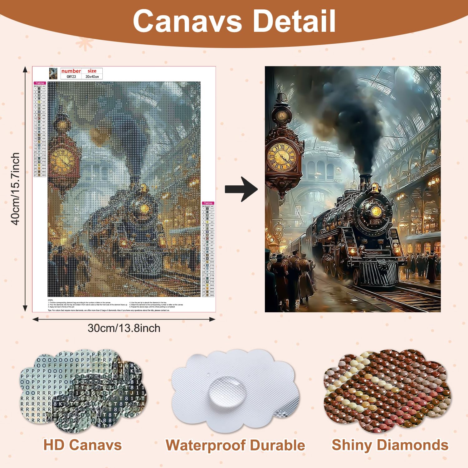 AIRDEA Train Diamond Art Painting Kits for Adults,Diamond Painting 12x16in,DIY Gem Art Kits