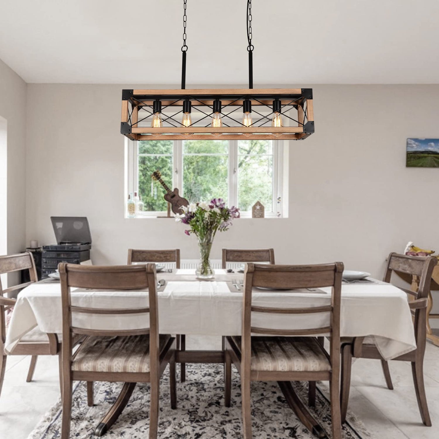 - ❤ RUSTIC FARMHOUSE STYLE : Features a classic iron frame with faux painted wood grain finish. This kitchen pendant lighting is ideal for farmhouse, coastal and transitional style spaces.