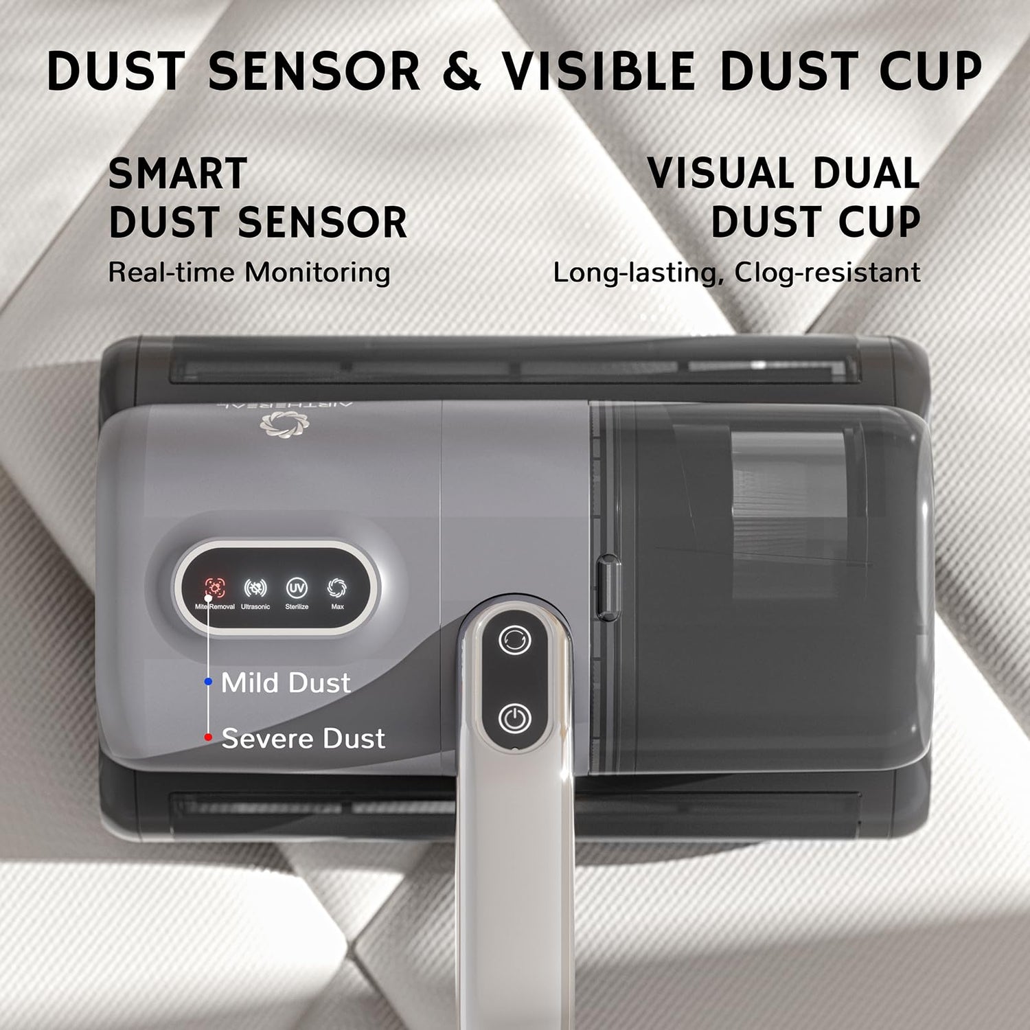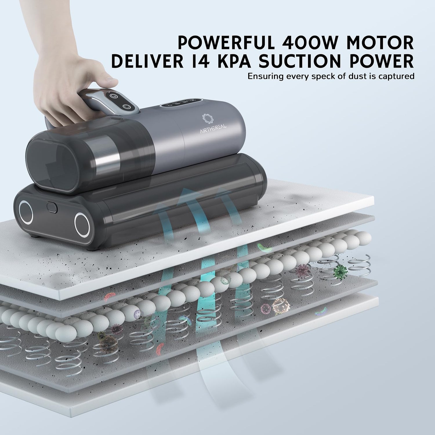 AIRTHEREAL M1 Mattress Vacuum Cleaner, 6 in 1 Bed Vacuum with High-Frequency Vibration - 80,000 RPM Dual Brushroll Rotation, UV-C Light, 14Kpa Suction, Dust Sensor, Ultrasonic and Heating Tech