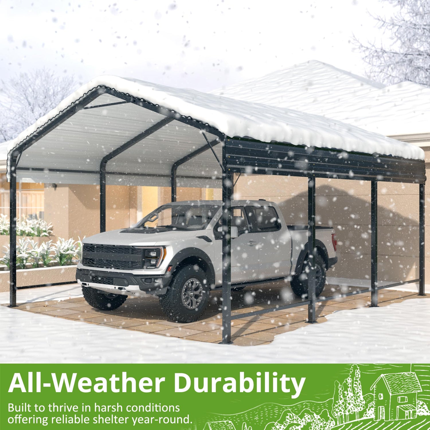 - [Durable Structural Support] AIRWIRE heavy-duty metal carport is the ultimate solution for protecting your vehicles, boats, and various equipment. The frame is constructed from high-quality square steel tubing, meticulously reinforced at 11 key locations, ensuring unrivaled strength and resilience. With its superior structural integrity, this carport is built to withstand diverse climatic conditions.