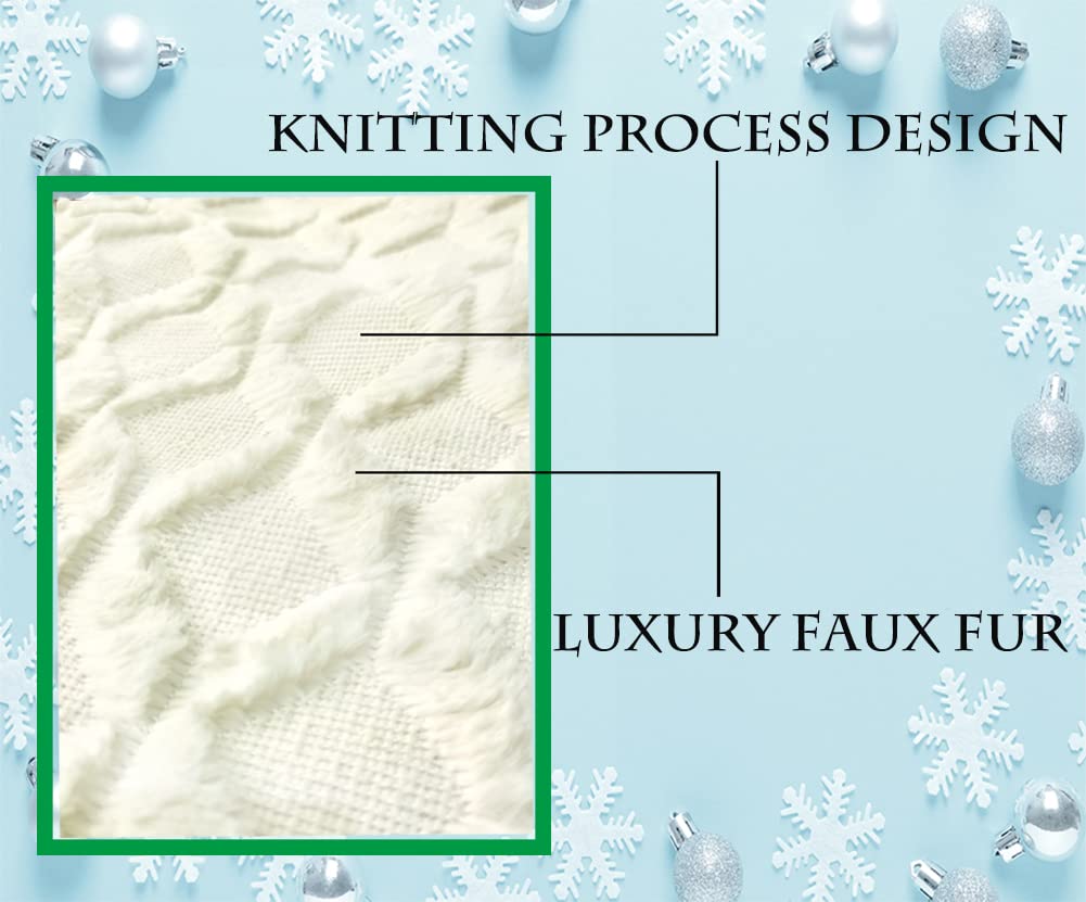 - 【High Quality】Premium Faux Fur With Cable Knit Christmas tree skirt, 48 inch--beautiful and warm soft,the favorite spot for pets in winter.New upgraded Cloth, soft and warm!