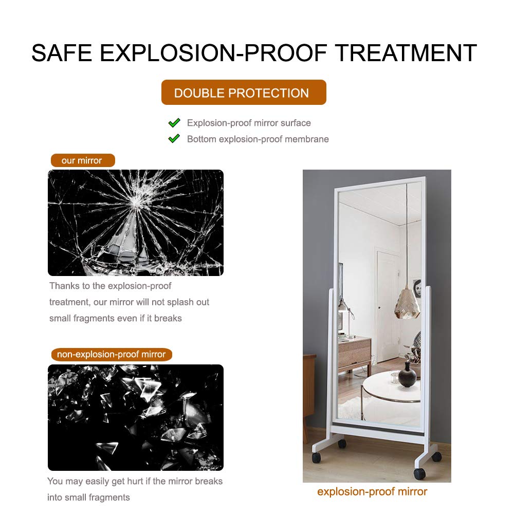 - SAFE MIRROR - Absolutely safety guaranteed floor mirror with explosion-proof membrane and scatter prevention.
