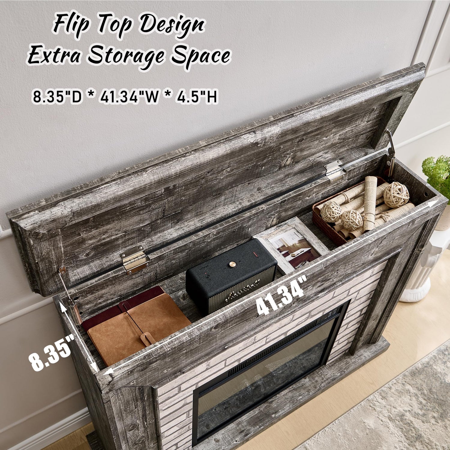 - 【Extra Storage Space】The electric fireplace with mantel features a hidden flip-top design with premium hinges that opens easily and silently, allowing you to place magazines, gamepads, remotes, and more