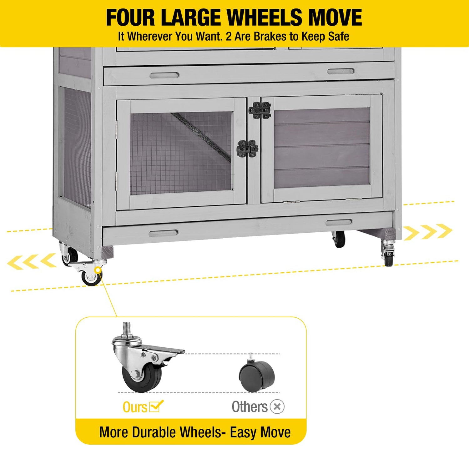 - Easy Movement: Four stronger metal wheels to easily move the rabbit hutch and quickly. 2 are brakes to fix well and keep safe.
