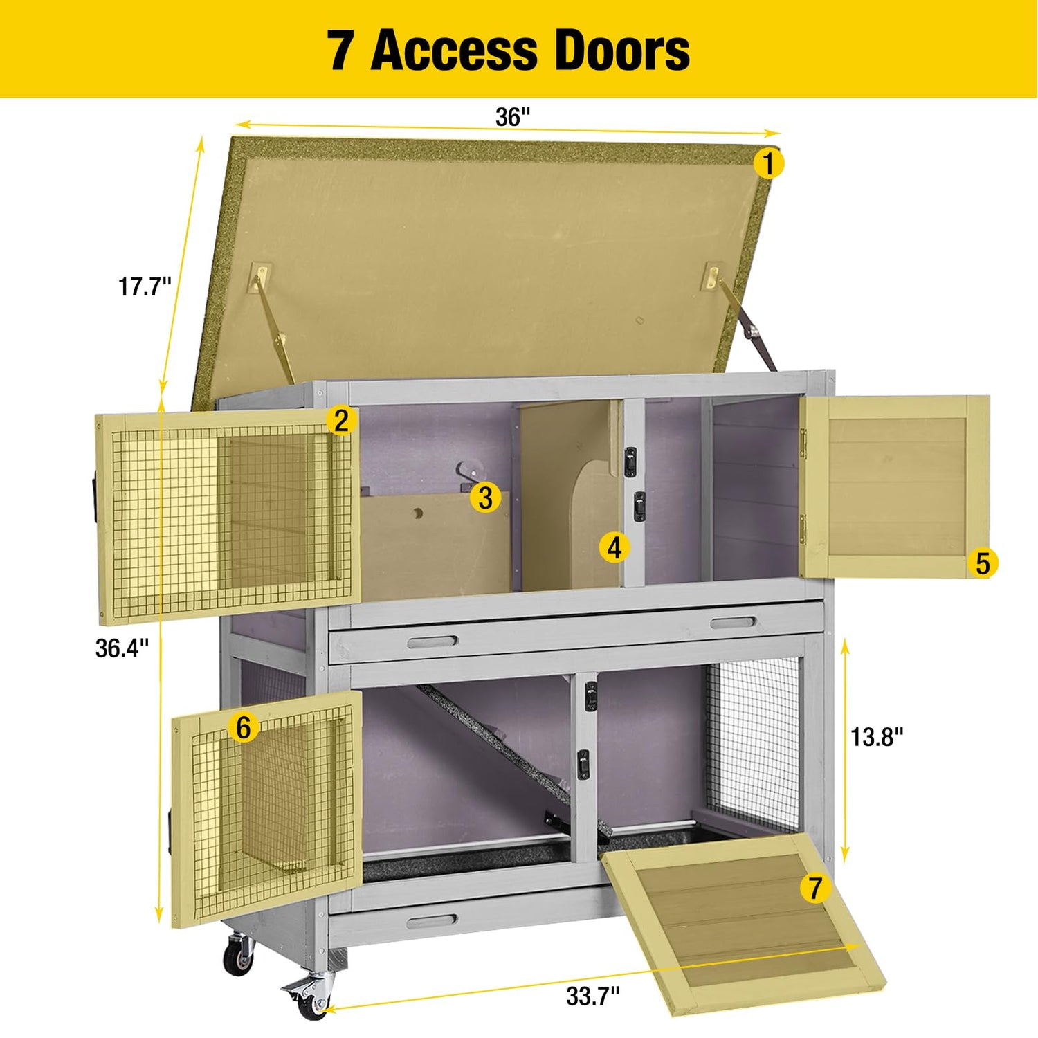 - 7 Access Doors: The multiple doors and ramp for your pet walk in and out the guinea pig cage easily.Convenient for you to take care of them.