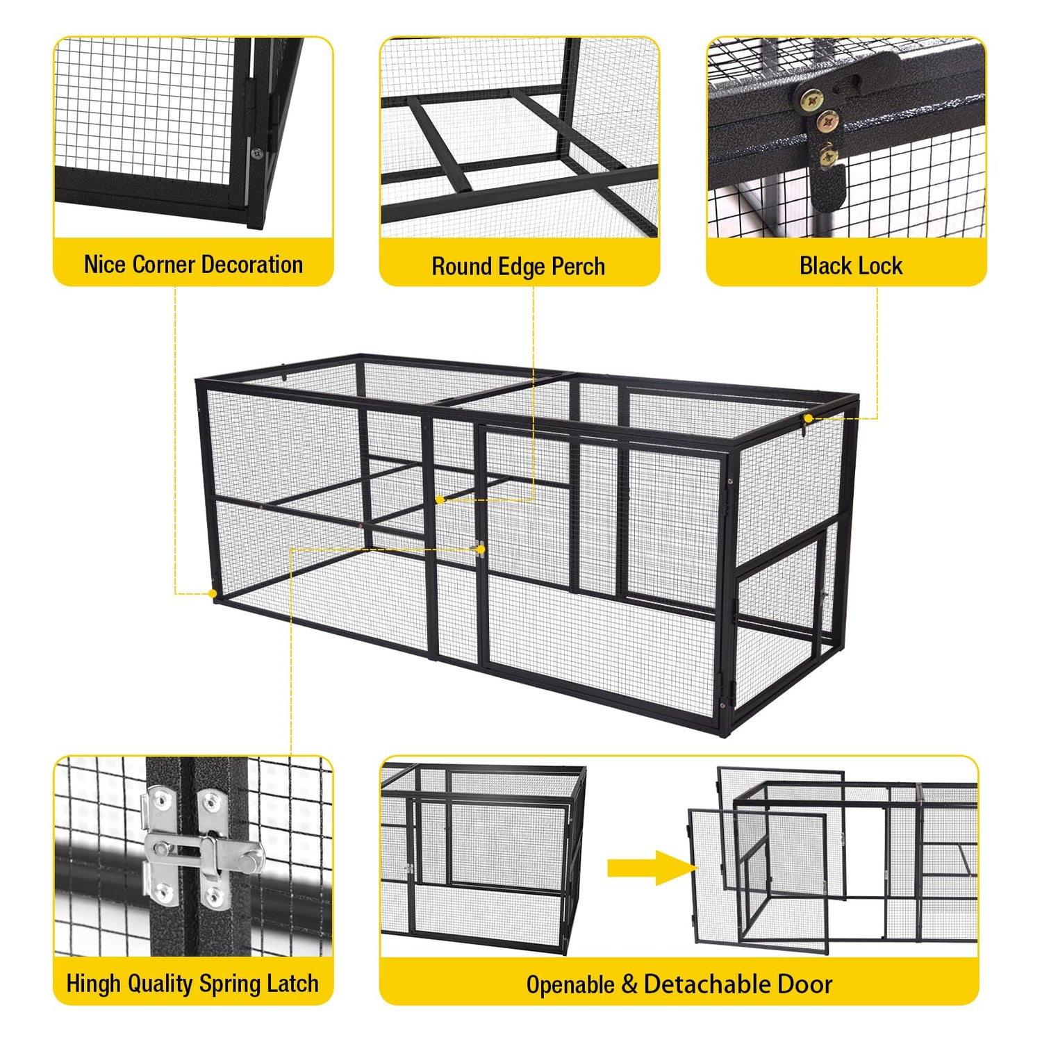 - Chicken run with four doors for easy access & cleaning. A series of locks on each doors keep your pets safe inside