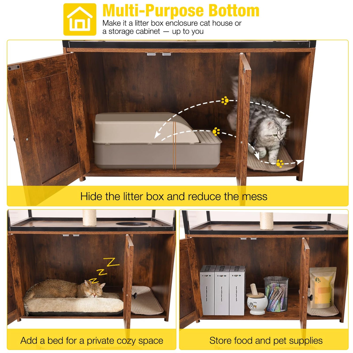 - 👍【Wide Multi-Purpose Space】 Spacious cabinet that can be used by mutil cats at the same time. The large storage can effectively store cat food, cat toys, and other pet supplies to keep your space in order!
