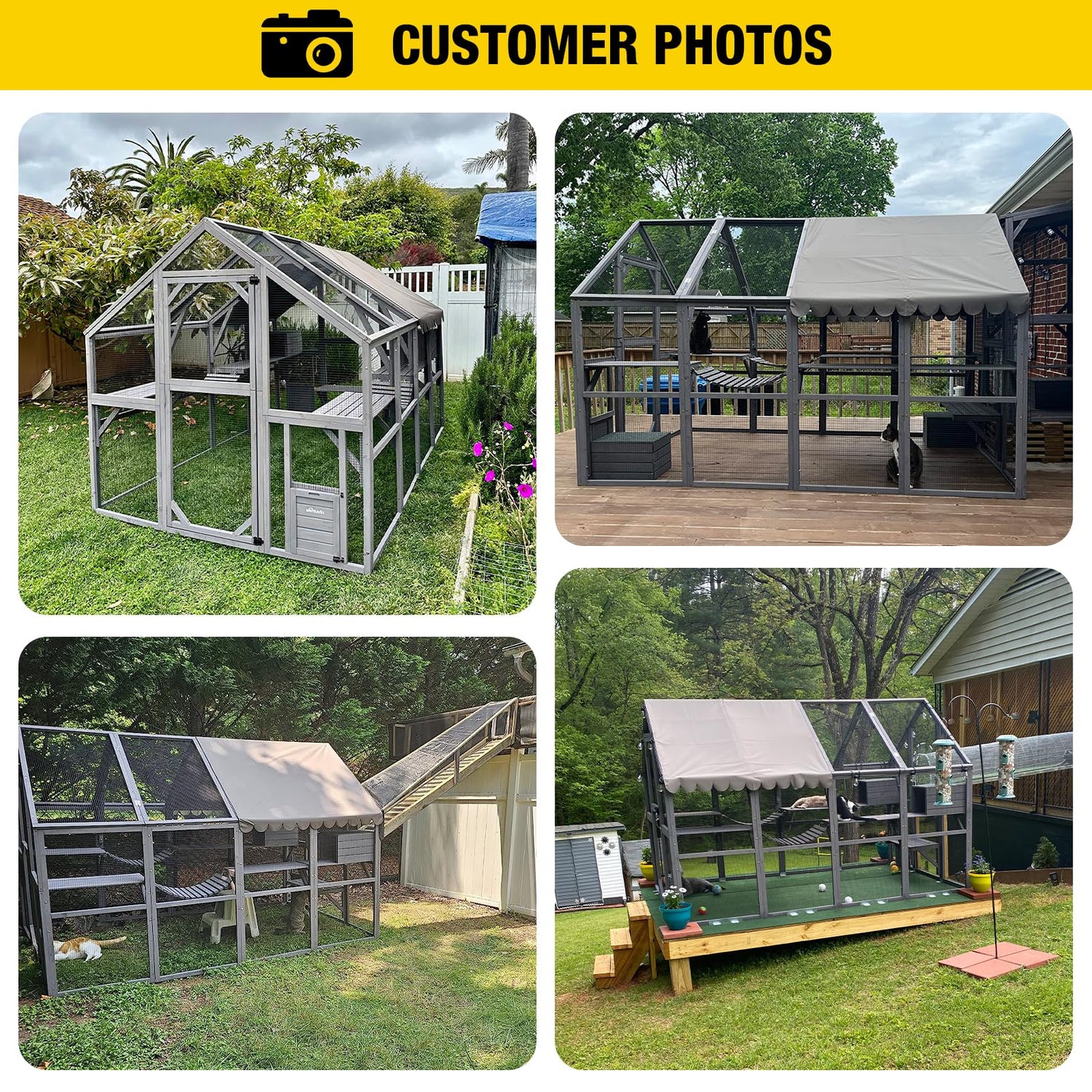 • 【Walk-in Style Catios】Fully open enter door at 60" tall allow you to go inside to interact with your cats,make feeding and cleaning easy.The wire mesh provides transparent full sight around the cat for its curiosity and observer nature.