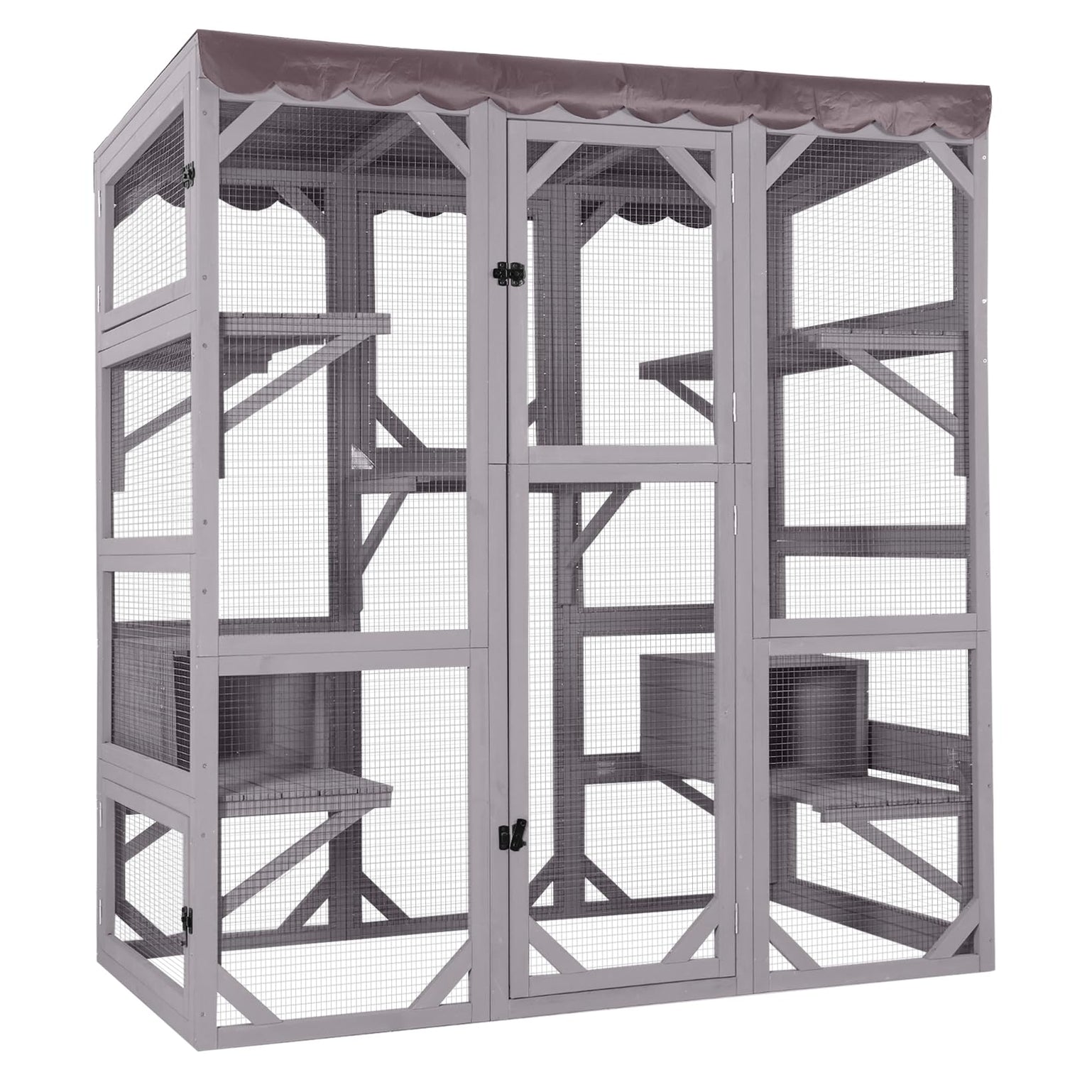 Aivituvin Catio Outdoor Cat Enclosure Large Cat House for Mulitiple Cats Walk in Cat Cage with Tarp Roof 70"