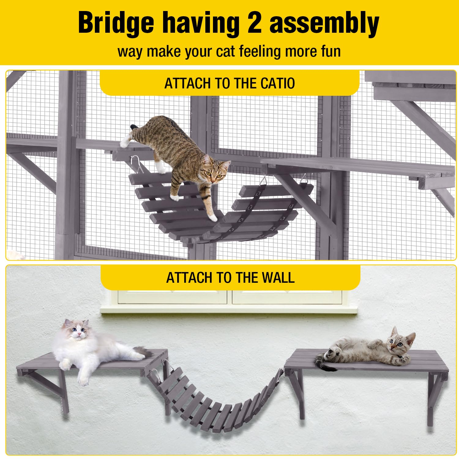 - Versatile Bridge Assembly:The included bridge can be assembled in two ways to add more fun to your cat's environment. Attach it to the catio for an elevated walkway, or attach it to the wall for a unique play area. This feature enhances the overall design and functionality of the enclosure