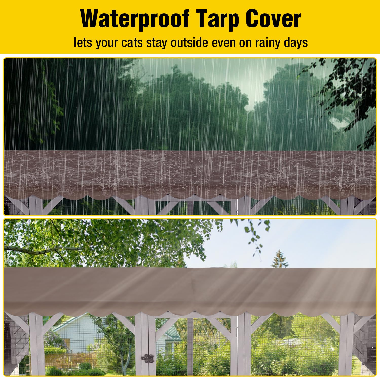 - Durable and Weather-Resistant Construction:Crafted with high-quality materials with stability and durability, while the waterproof tarp cover protects your cats from rain and other weather elements, allowing them to enjoy the outdoors even on rainy days