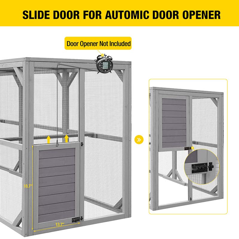 - 【EASY TO CLEAN】Comes with a removable bottom sliding tray for easy cleaning, and EXTRA sliding door with arm for easier open/close. Easily reach all areas of the coop with 5 access areas.