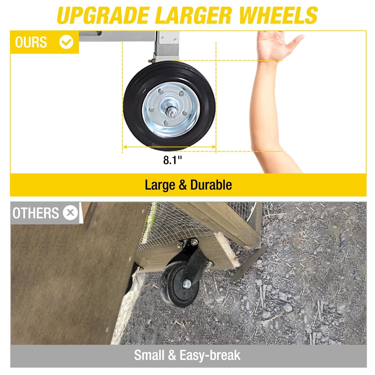 - Easy Movement: 2 upgrade large wheels with long design handle makes this backyard chicken house easily movable.