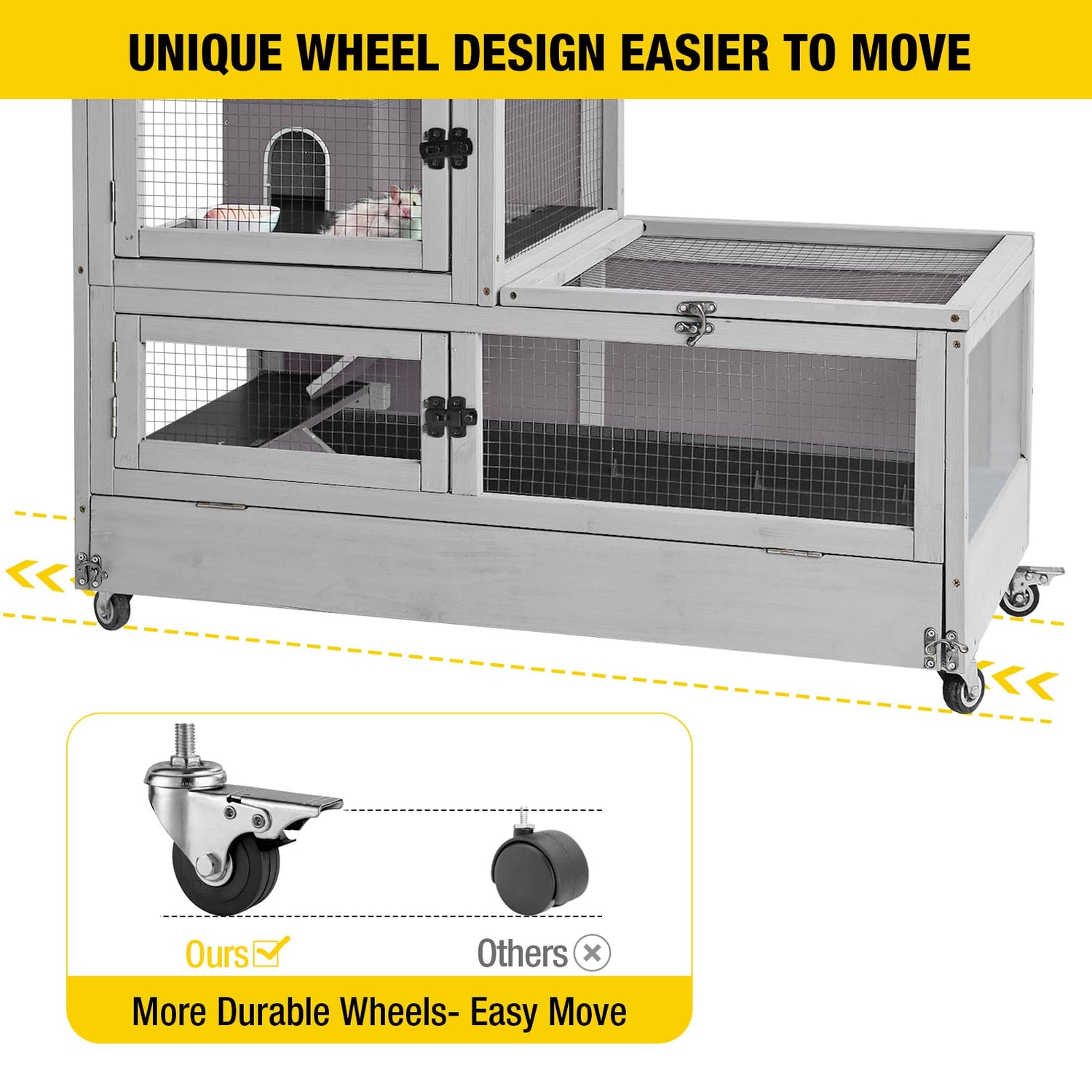 Aivituvin Guinea Pig Cage 2 Levels Wooden Rabbit Hutch with 2.36”Deeper Anti-Chewing Pull Out Tray Rat Cage with Hideout,Aluminium Alloy Edge…