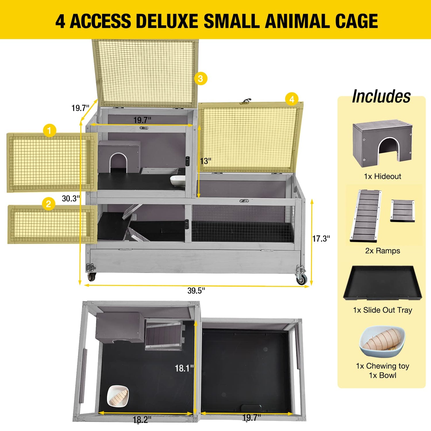 - 🐹【2 Levels】 2 levels small animal cages give your small rodent a roomy place to burrow and run.Overall size:39"L x 19.7"W x 30.3"H,perfect for hamster,rats,Guinea Pigs and other small animals