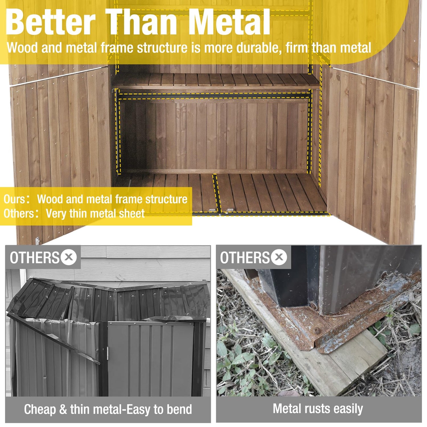 Aivituvin Outdoor Storage Shed Upgraded with Strong Metal Frame Garden Tool Shed Storage House Cabinet with Adjustable Shelfs and Wooden Floor 4.6 x 2.42FT (Dark Brown)