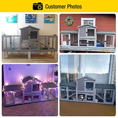 - ★The Newest Improvement: This extra-large rabbit hutch is upgrade with extra REMOVABLE PVC Bottom Layer for easier clean if use indoor.