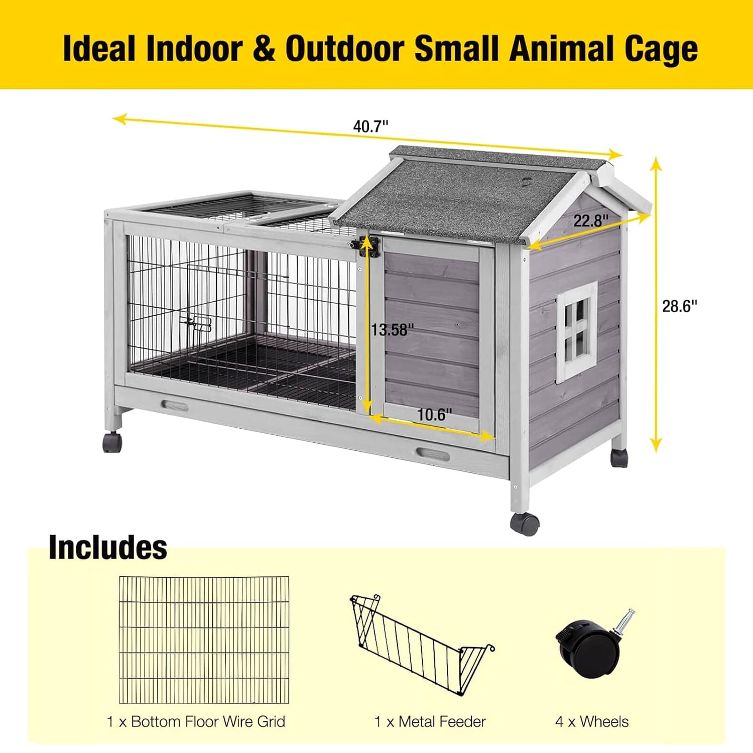 - Movable Wooden Hutch: Four Casters to move the bunny hutch easily and quickly. Two of them are brakes to stay well and safe