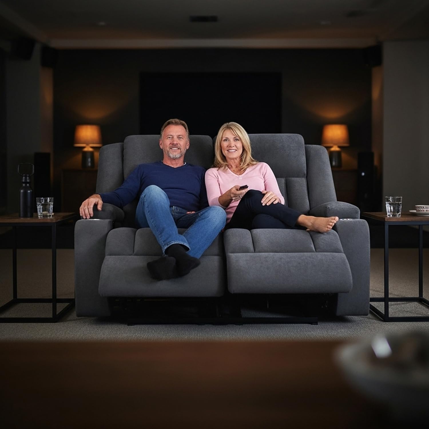 - Manual Recline Chair: Relaxation is always within reach—simply pull the side lever to recline up to 135°. Each seat operates independently with a built-in footrest, allowing you to stretch out fully and enjoy personalized comfort for movies, reading, or naps.