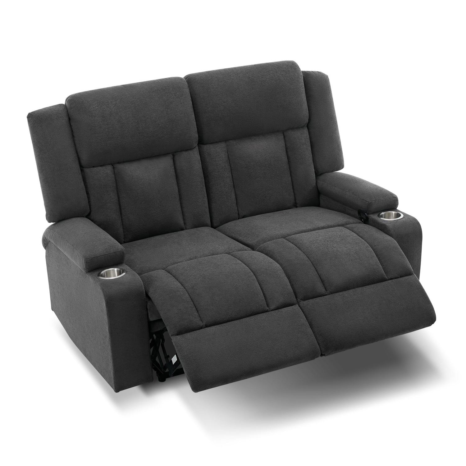 AIWOEN Recliner Loveseat Sofa with Cup Holders, 2-Seater Fabric Reclining Couch, Manual Recliner Wall Hugger for Living Room, Small Spaces, Home Theater (Dark Gray)