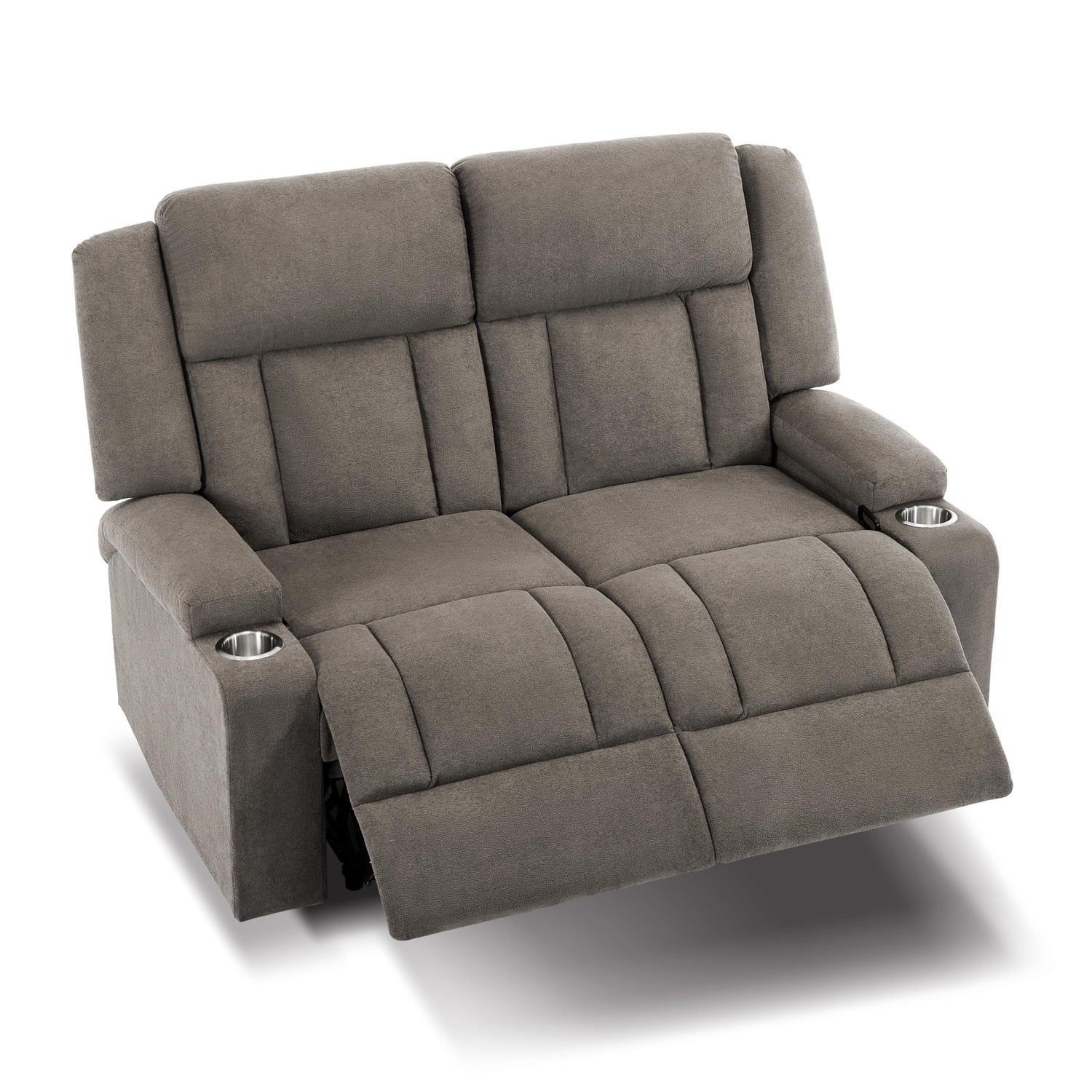 AIWOEN Recliner Loveseat Sofa with Cup Holders, 2-Seater Fabric Reclining Couch, Manual Recliner Wall Hugger for Living Room, Small Spaces, Home Theater (Light Brown)
