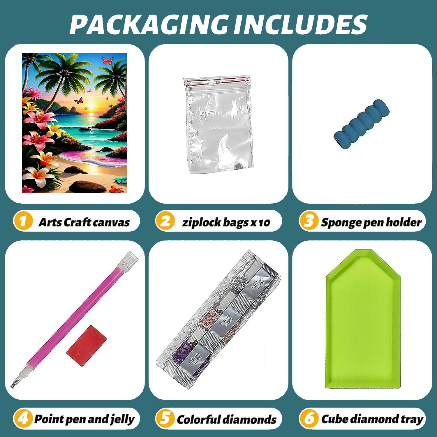- Package Included: Diamond painting tool kit includes 1 canvas without frame, 1 diamond sticky pens, 1 adhesive, 1 plastic tray and 10 resealable bags (we added an additional 30% of diamonds to prevent the occurrence of insufficient diamonds)