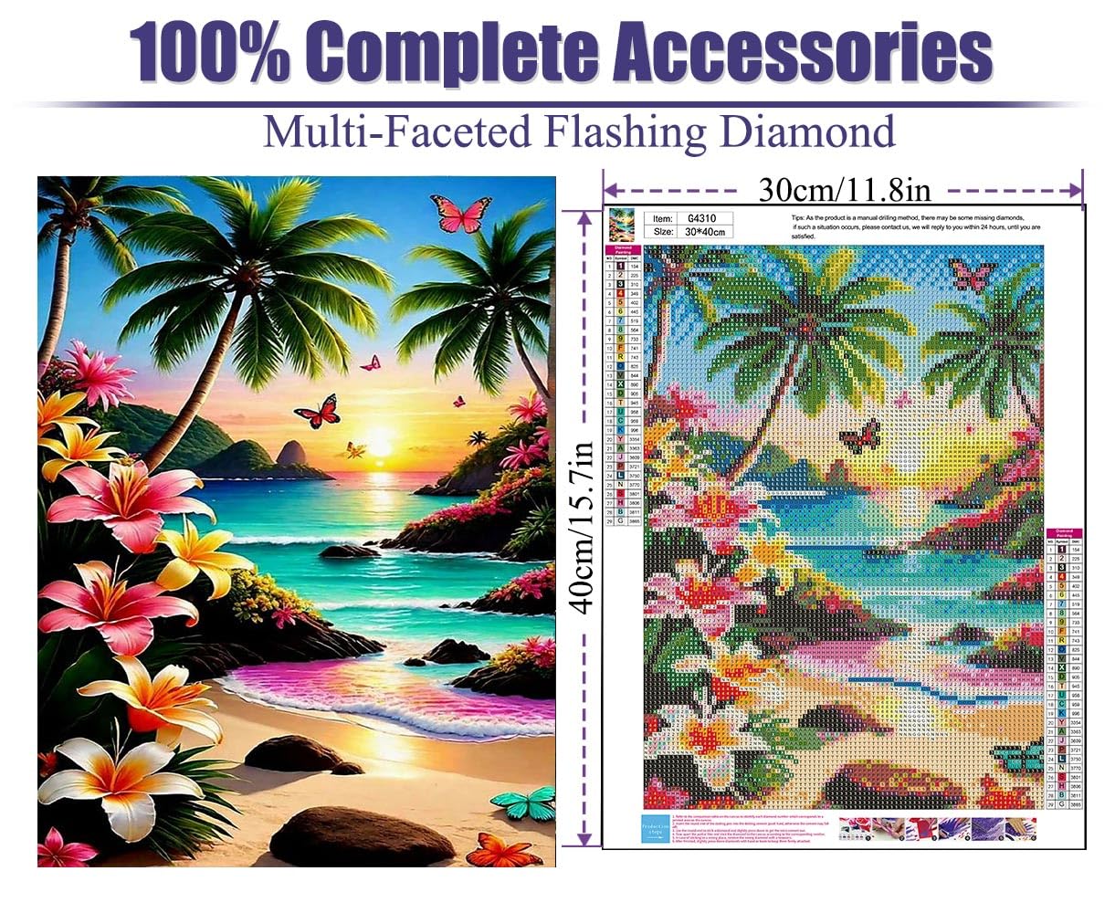 ajepon Beach Diamond Art Kits for Adults - Beach Diamond Painting Kits, Seascape 5D Diamond Painting for Adults, Gem Art Kits for Wall Home Decor Arts Craft 12x16inch