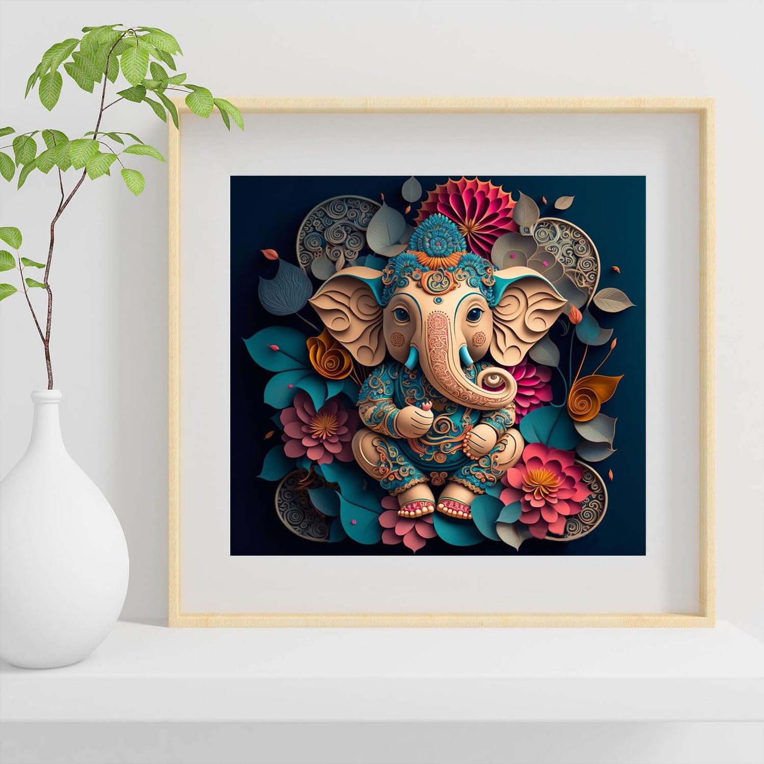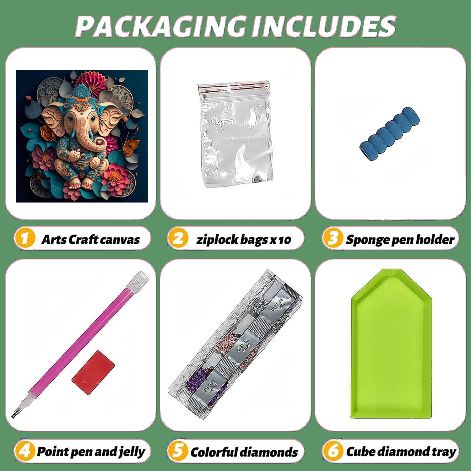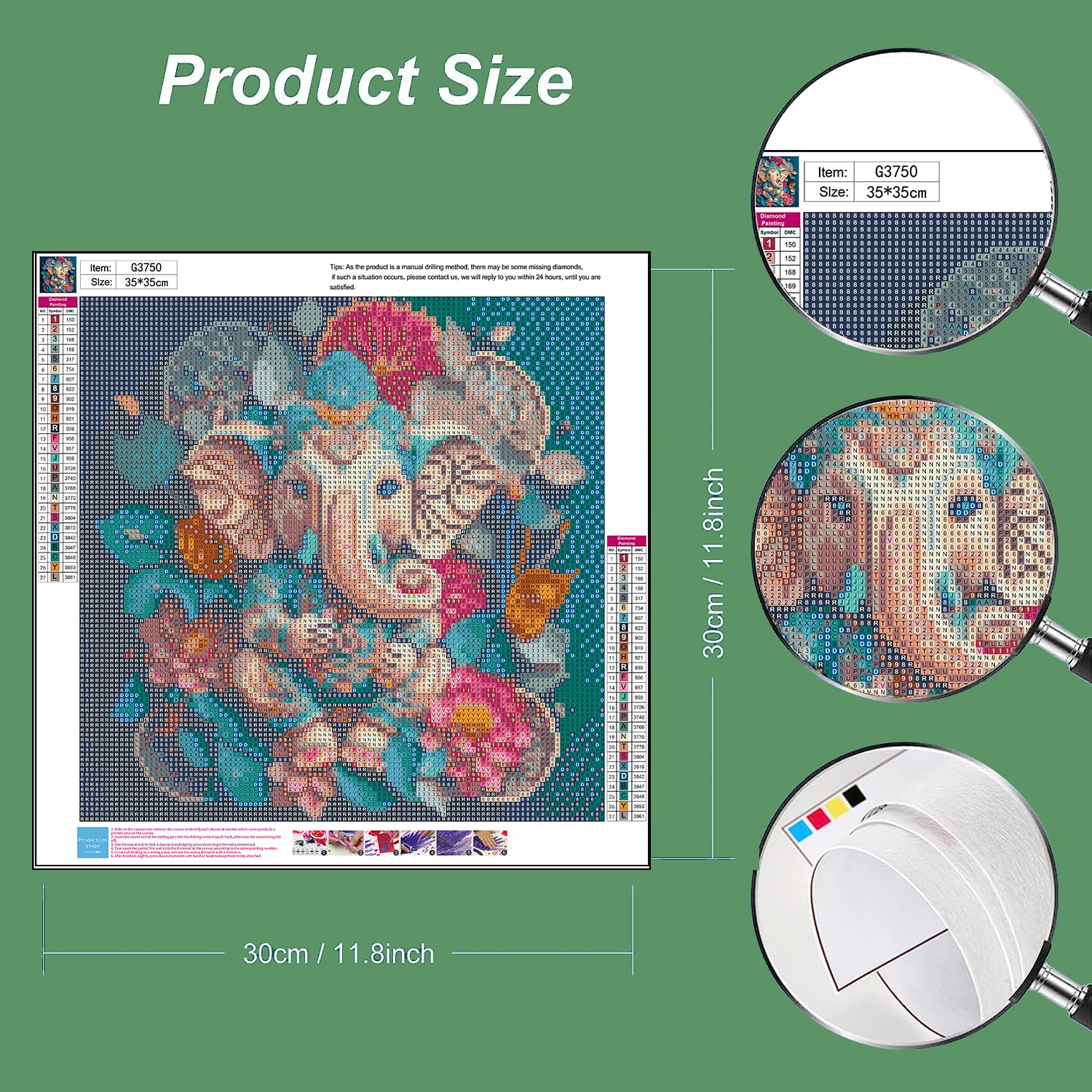 ajepon Elephant Diamond Painting Kits for Adults-Diamond Art Kits for Elephants, Hindu Elephant Gem Art Kits for Adults for Gift Home Wall Decor (14x14inch)