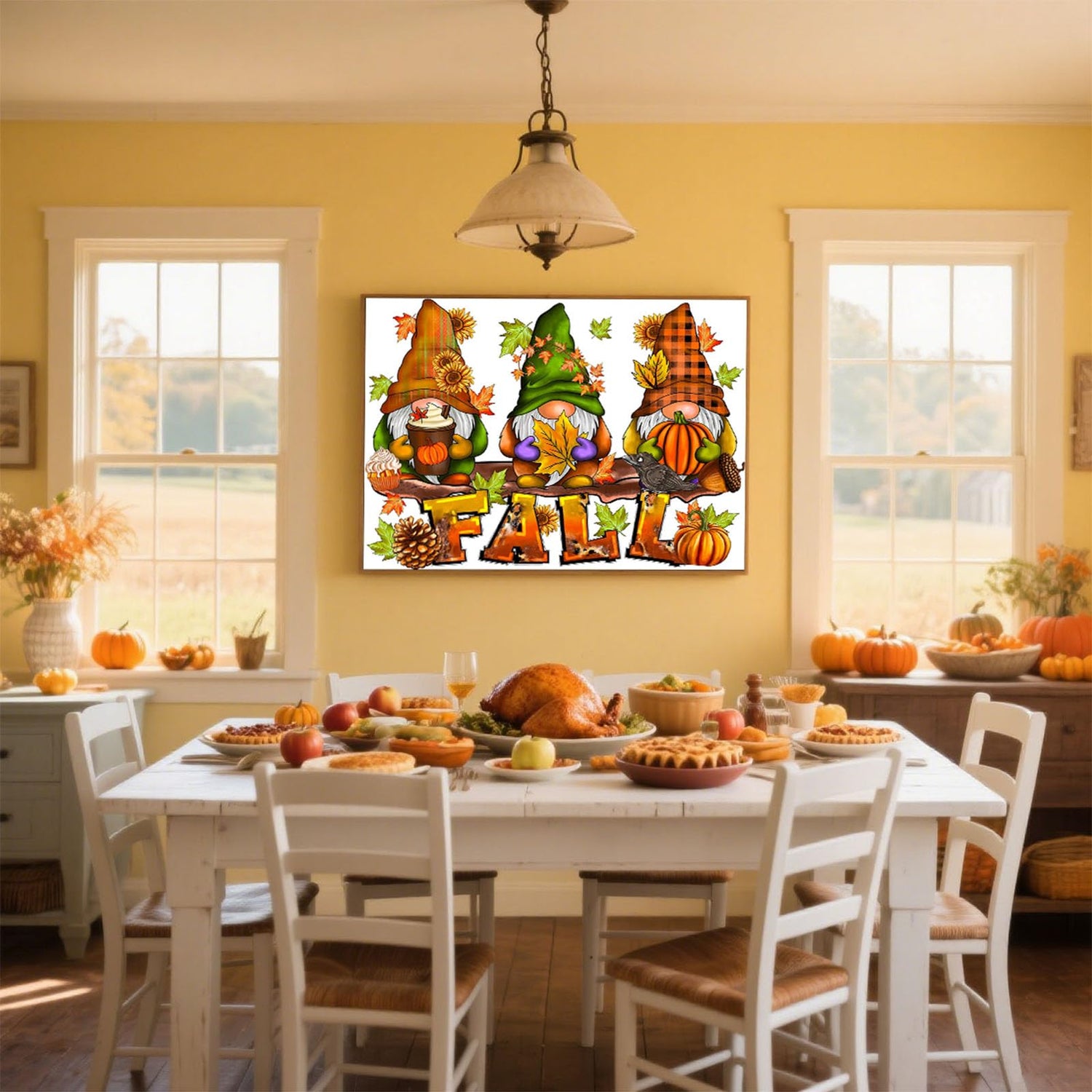ajepon Gnome Diamond Art Kits for Adults - Fall 5D Diamond Painting, Gnomes Gem Art for Adults, Fall Pumpkin Gem Painting Kits for Wall Home Decor Arts Craft 12x16inch