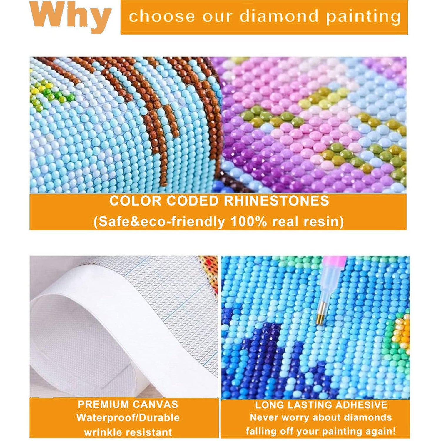 - Easy operation: The diamond art numbers and symbols on the HD canvas are clear and easy to read, you can easily complete the painting according to the steps. The drill sticks to the canvas effortlessly and the diamond holds up well and doesn't fall off