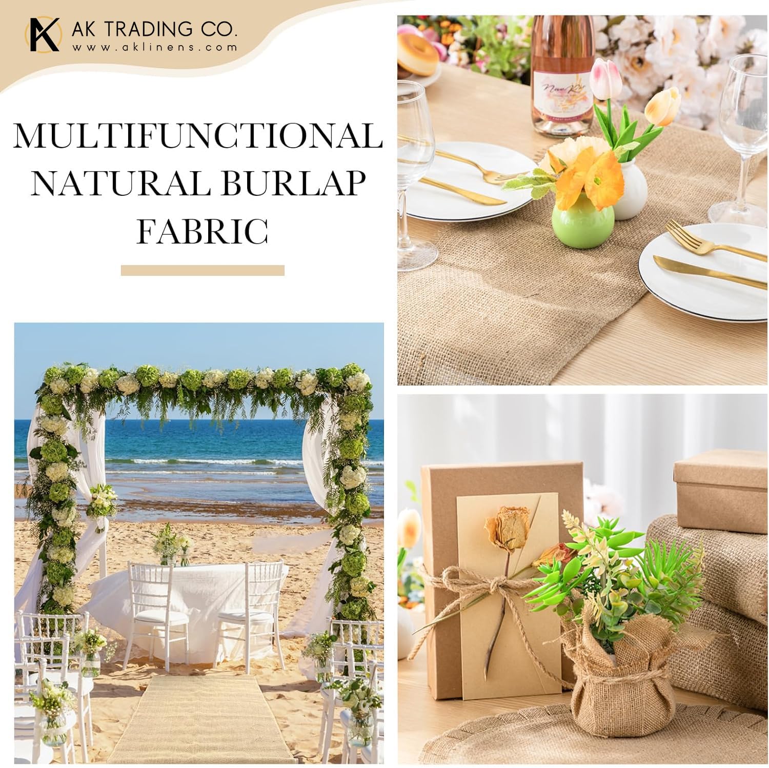 - Durable 100% Natural Jute Material: AK TRADING CO. 40" Wide Burlap Fabric is crafted from high-quality, 100% natural jute material, ensuring a strong, durable, and long-lasting fabric. With a weight of 10oz per yard, this burlap fabric is perfect for heavy-duty applications such as upholstery, crafts, home décor, and more. Its tight weave provides excellent durability while maintaining the rustic charm that burlap is known for, making it an ideal choice for both functional & decorative purposes.