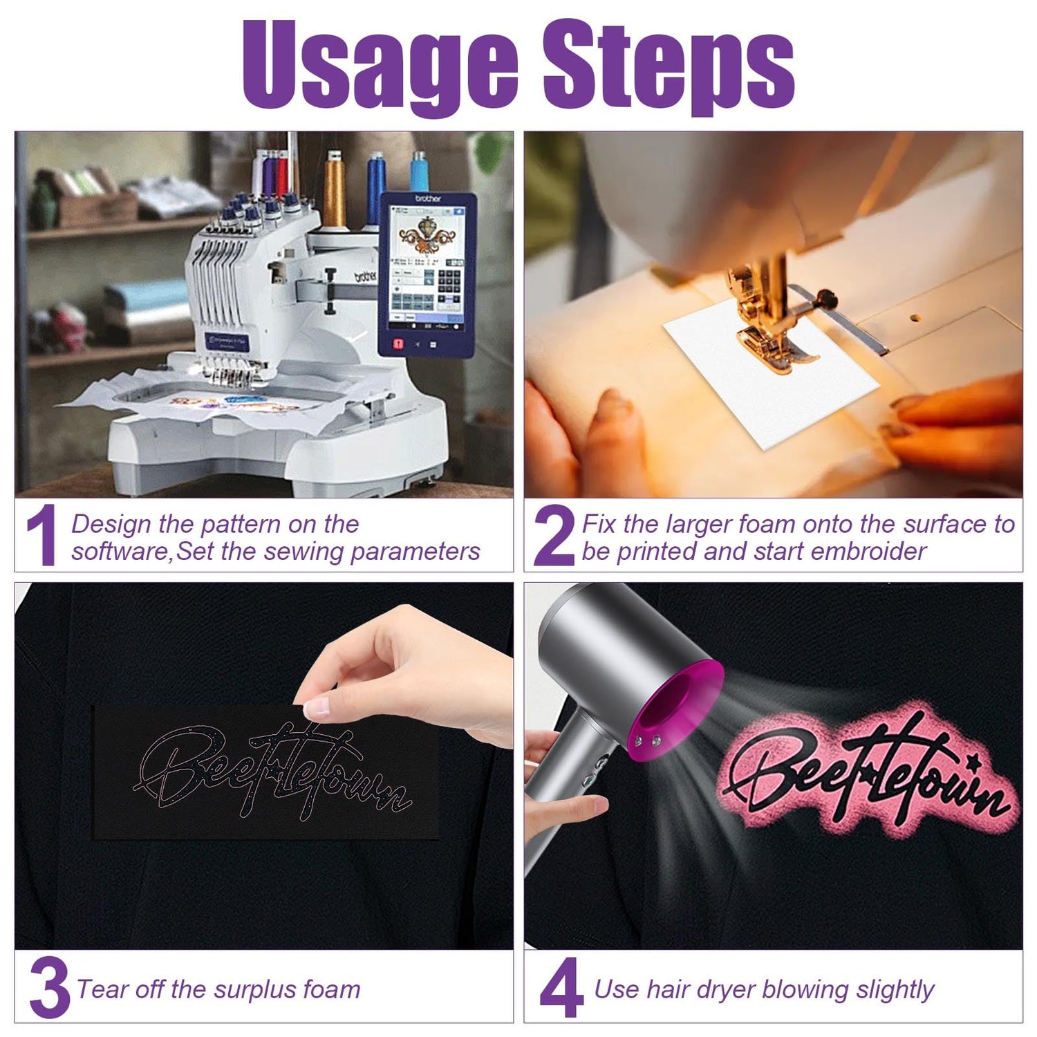 - 3D Effect: The embroidery foam can enhance the 3D effect of your embroidery, hand sewing,piping,making your patterns more interesting and eye-catching. Sew foam can be used to sew patterns on T-shirts, bags, pillows, and hats