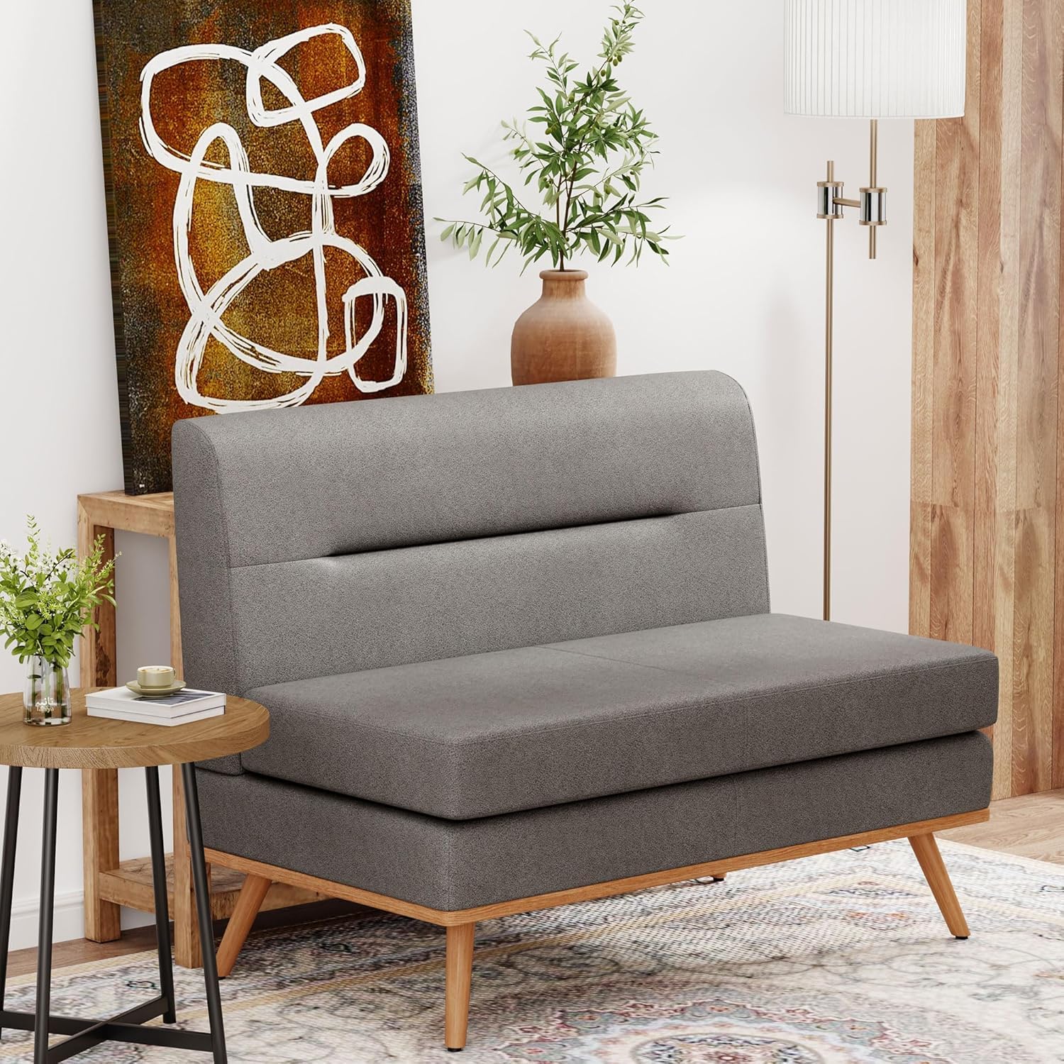 Aklaus Upholstered Small loveseat,Faux Leather Modern Mini Sofa Couch Love Seat Armless Settee Bench with Back for Living Room Bedroom Office Small Space Entryway Grey