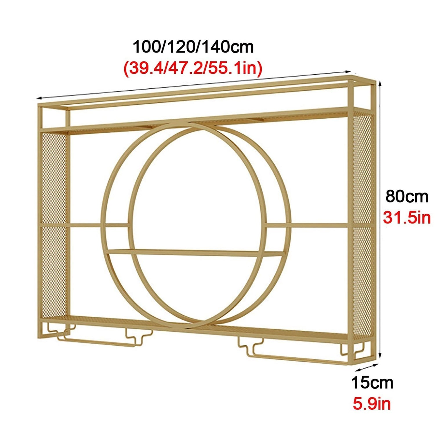 - 2. Premium Quality Materials: Crafted from durability iron, our wall-mounted wine rack is sturdy and built to last. The sleek and modern design not only adds a touch of elegance to your home decor but also provides a safe and secure storage solution for your wine bottles and glasses. With a capacity to hold multiple bottles and glasses, our liquor bottle display shelf is perfect for wine enthusiasts and collectors.