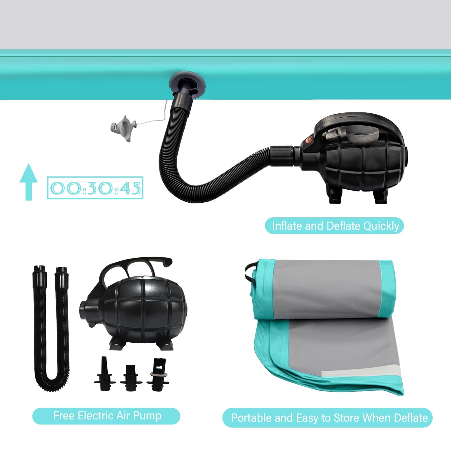 - ✔【COMPLETE & FAMOUS BRAND ACCESSORIES】You will get one electric air pump,one carry bag and one repair kit(without glue) for free when you purchase air mat.With famous brand valve(BRAVO),just take several minutes to inflate or deflate,and it can protect the inside filament coz the safety device of valve,valve leak-proof function will avoid air leak when you take away the pump nipple.With carry bag, it is convenience to take your gym mat with you.