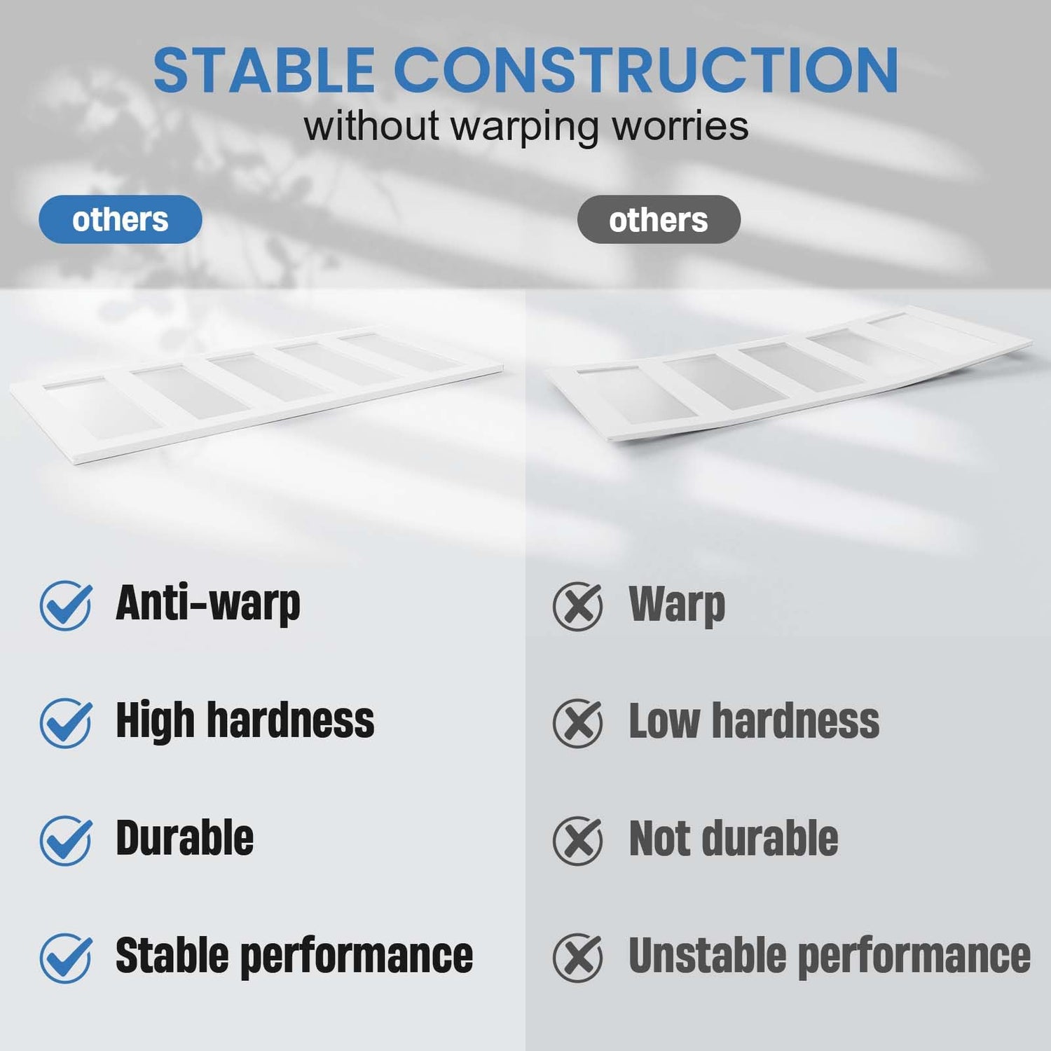 - PVC-Surface: The high-quality white PVC material is tightly bonded to the MDF wood board through high temperature and high pressure, and the layers are laminated to create a tightly bonded, waterproof, and scratch-resistant surface. The opaque glass design protects the privacy of customers and greatly increases the light transmittance. Make the whole room bright and modern.