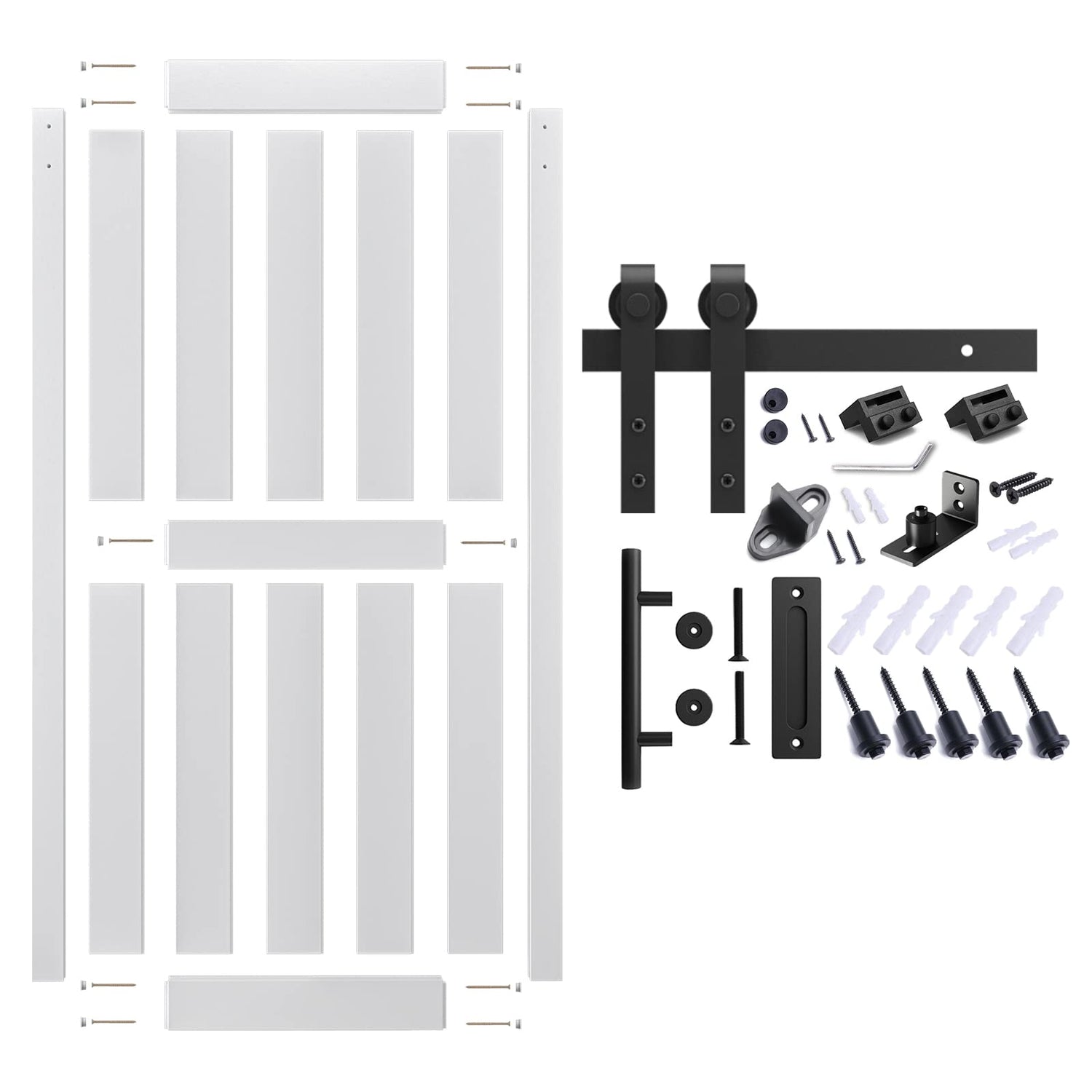 ALAMEDADT 42''x84'' Sliding Barn Door with 7 Ft Barn Door Hardware Kit& Handle& Floor Guides,Pre-Drilled Holes Easy Assembly - Include Installation Manual, Water-Proof PVC Surface, H-Frame, White