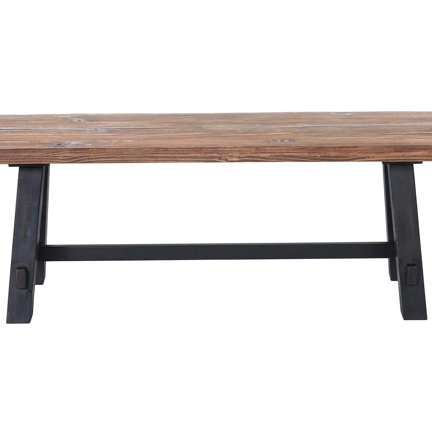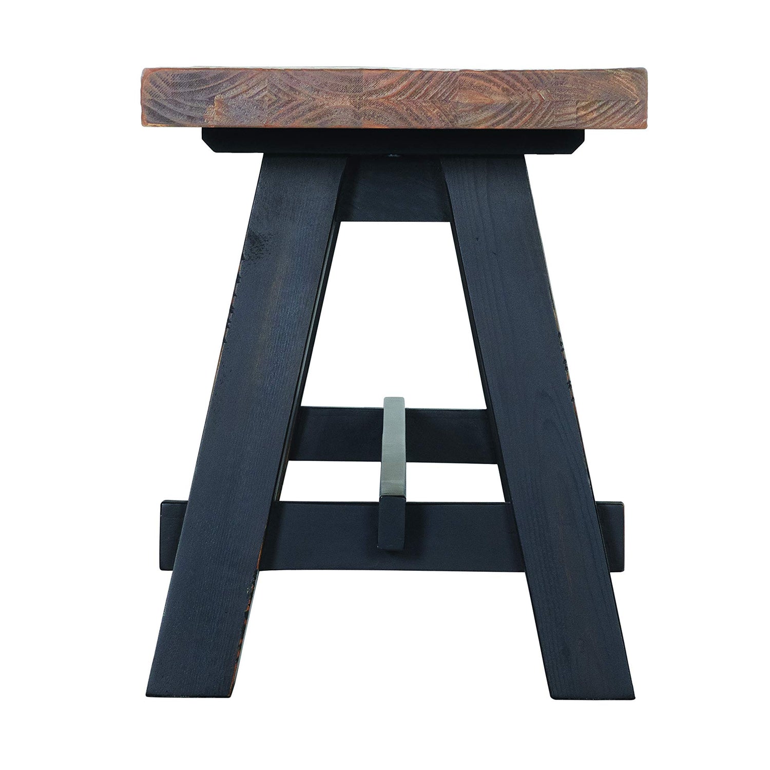 Add a unique touch to your home with this collection The lightly distressed black sawhorse leg design gives it a rustic, yet industrial feel. The solid wood top has a natural finish that features unique markings from the wood grain. This collection is sure to make a statement in your home. Made of solid wood.