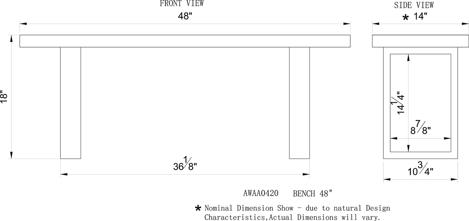 - DIMENSIONS: Assembled dimensions are 48" W x 14" D x 18" H, making this bench the perfect compact size to fit in any room or entryway while still providing ample seating or storage options.