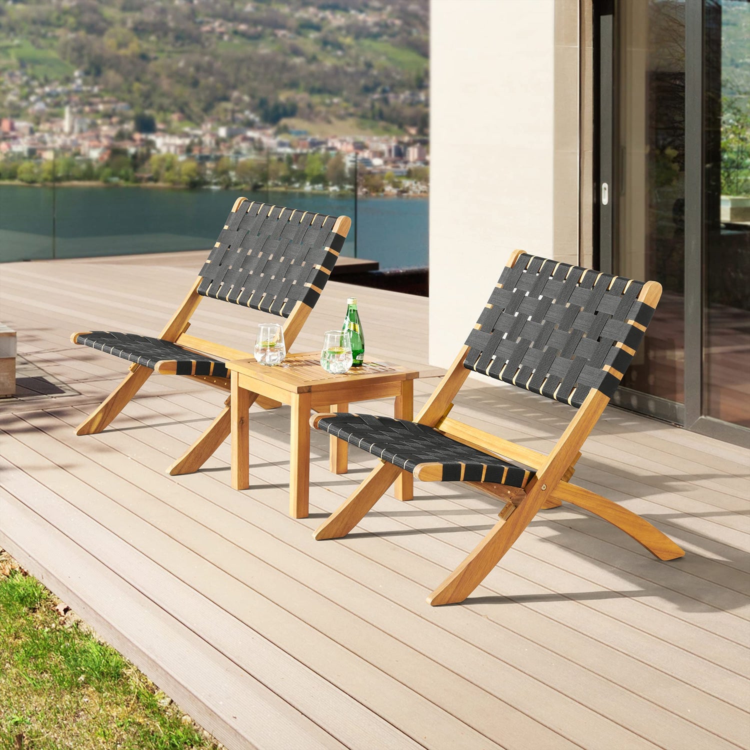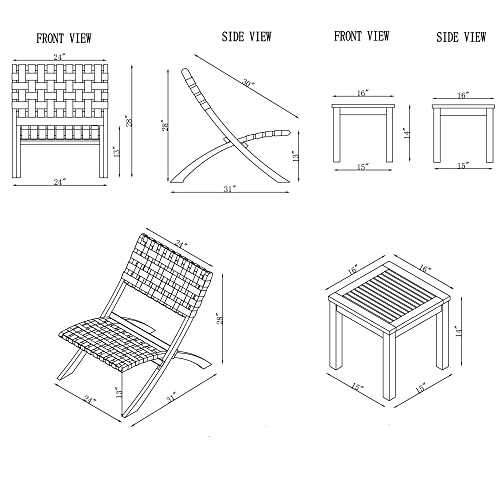 - STYLISH AND FUNCTIONAL: Create a stylish seating area in any outdoor or indoor living space with this 3-piece Acacia wood bistro set. This set includes two foldable chairs and a 14" high side table perfect for snacks or drinks and will withstand weather conditions to provide comfort and style season after season.