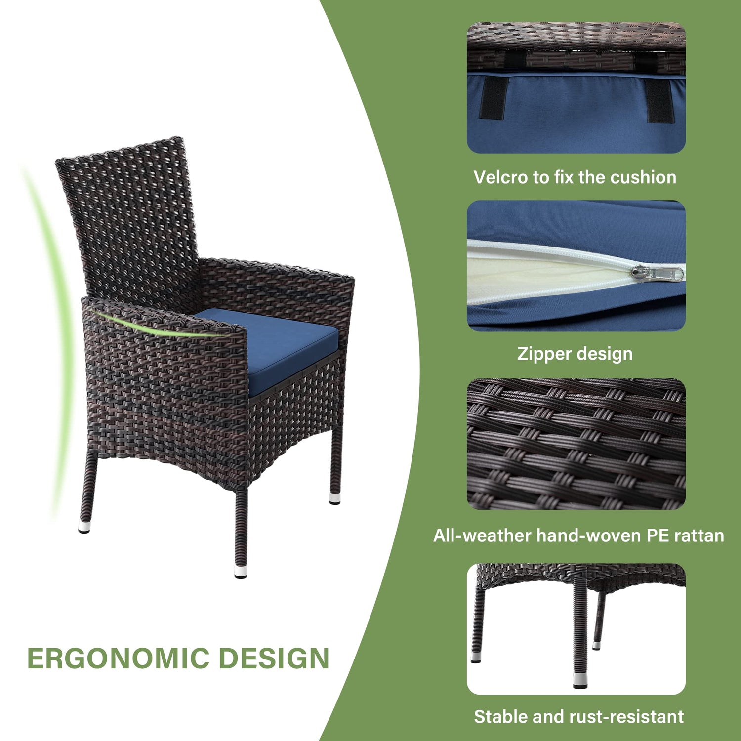 ALAULM 5 Piece Patio Dining Set All-Weather Wicker Outdoor Furniture Set w/Tempered Glass Tabletop, Removable Cushions and Umbrella Hole for Patio, Backyard, Garden, Poolside(Navy)