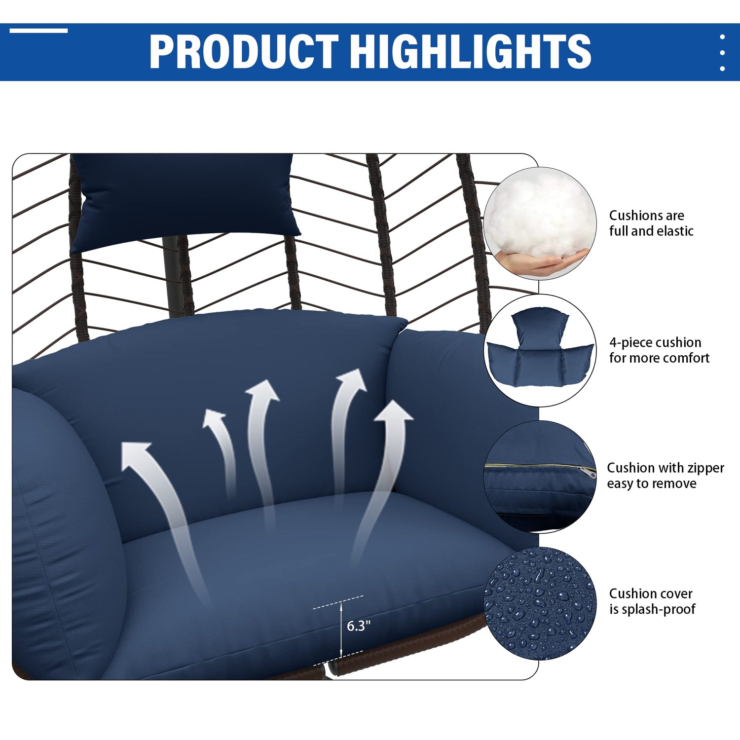 - STRONG & COMFORTABLE: Made of high quality iron with anti-rust coating, our egg chair frame is strong, safe and durable. Its load capacity is 350 lbs. Besides, we use polypropylene fiber with good resilience, strong bulkiness and resistance to extrusion as cushion filling. It’s very comfortable.