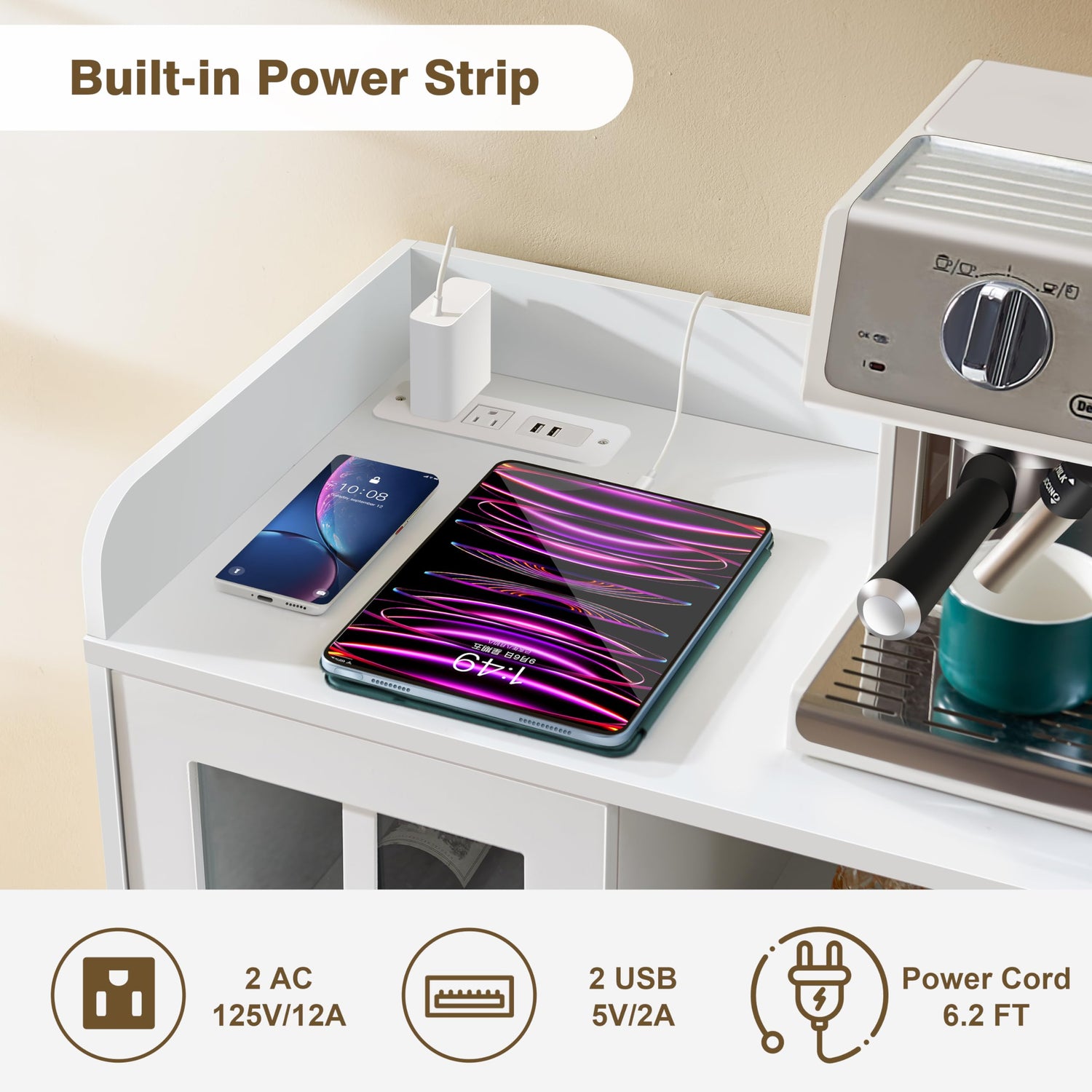 - 【Convenient Power Outlets】Our moden liquor cabinet built-in power strip with 2 outlets and 3 USB interface for convenience, which helps you easily charge coffee machines, ice makers, decorative lights, and sound equipment.