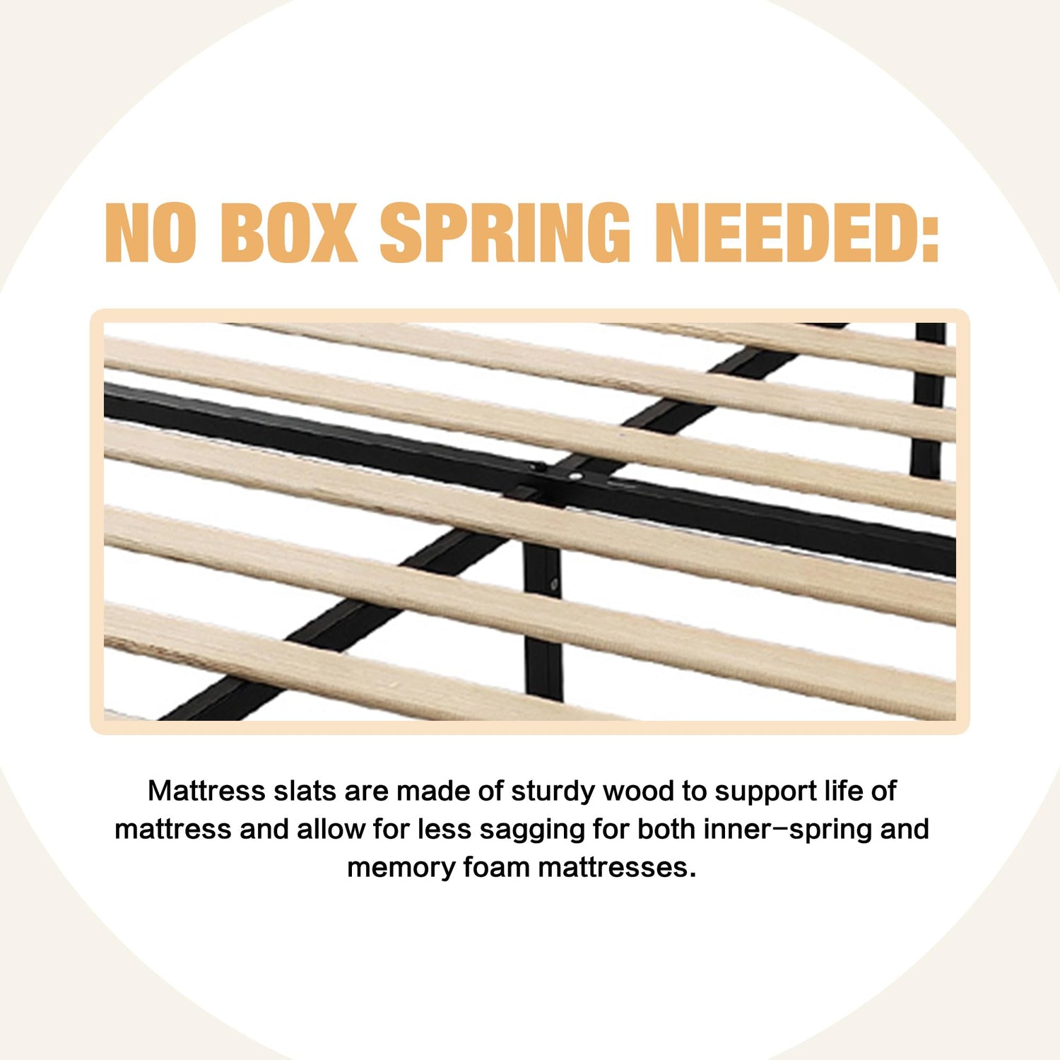 - No Box Spring Needed: Mattress slats are made of sturdy wood to support life of mattress and allow for less sagging for both inner-spring and memory foam mattresses. Air pass freely beneath your bed frame, keeping cool and ensuring your mattress maintains its freshness and lasts for longer.