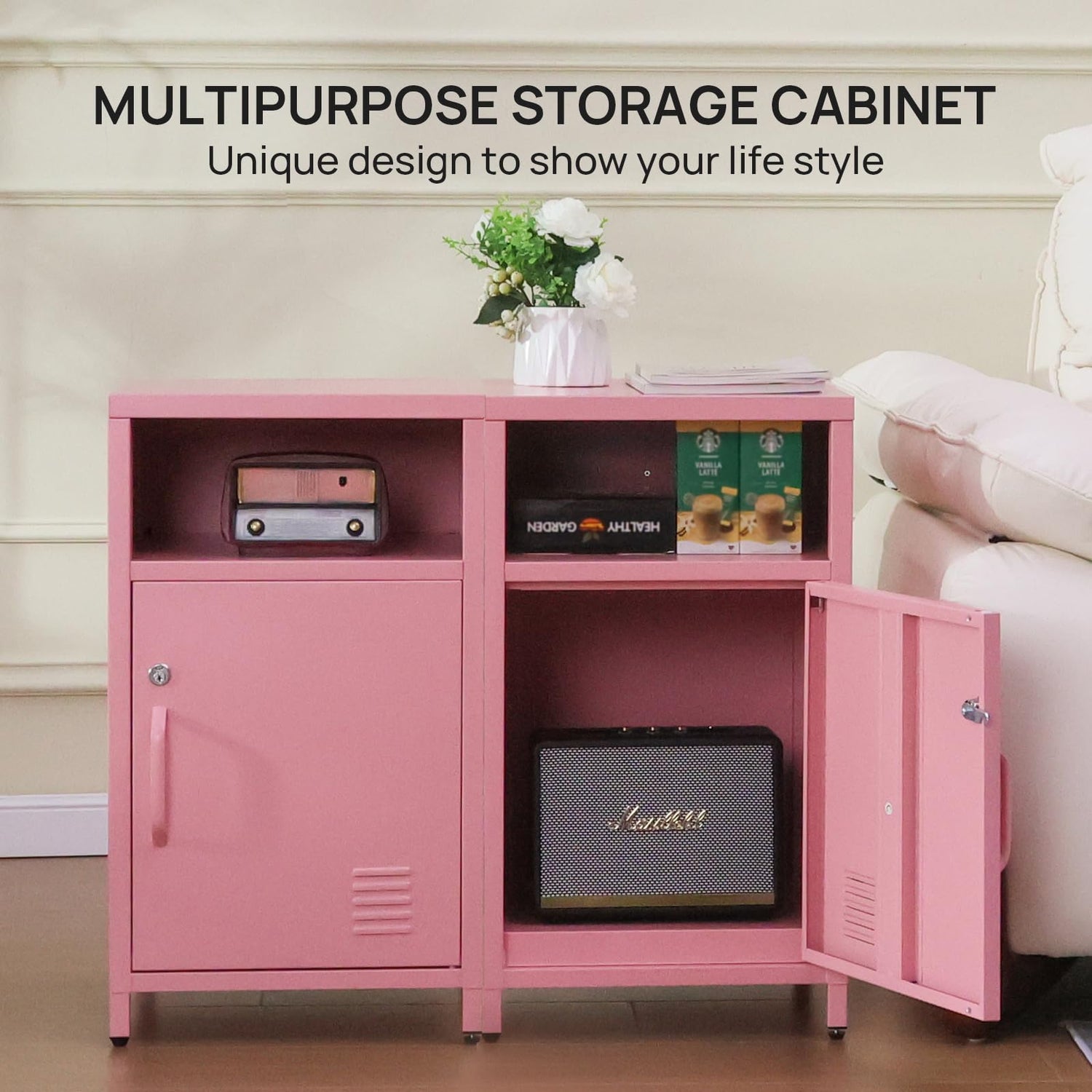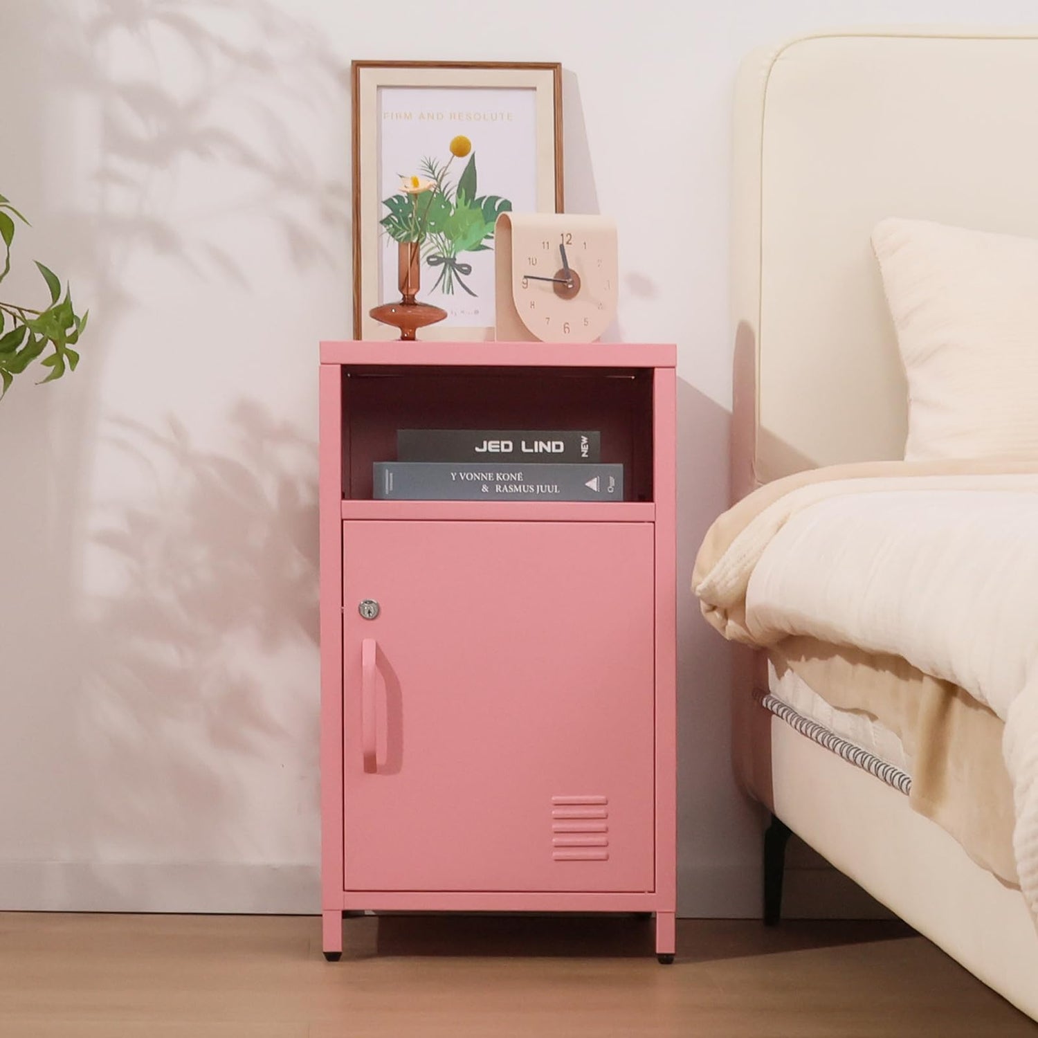 - Lockable Cabinet for Secure Storage: This metal nightstand features a lockable cabinet, perfect for keeping personal items secure and private. Ideal for use as a bedside table or end table.